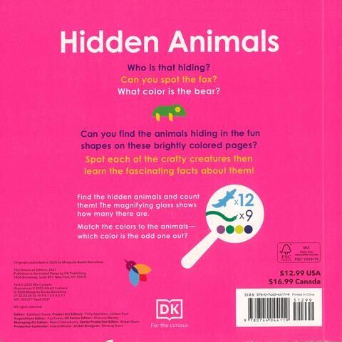 クマやキツネからワニやヘビまで、楽しい形の中に隠れている動物を見つけることができますか?動物の行動に参加して探してください!お子様は、この魅力的でユニークな動物のボードブックのすべてのページで何か新しいものを見つけて学ぶでしょう。