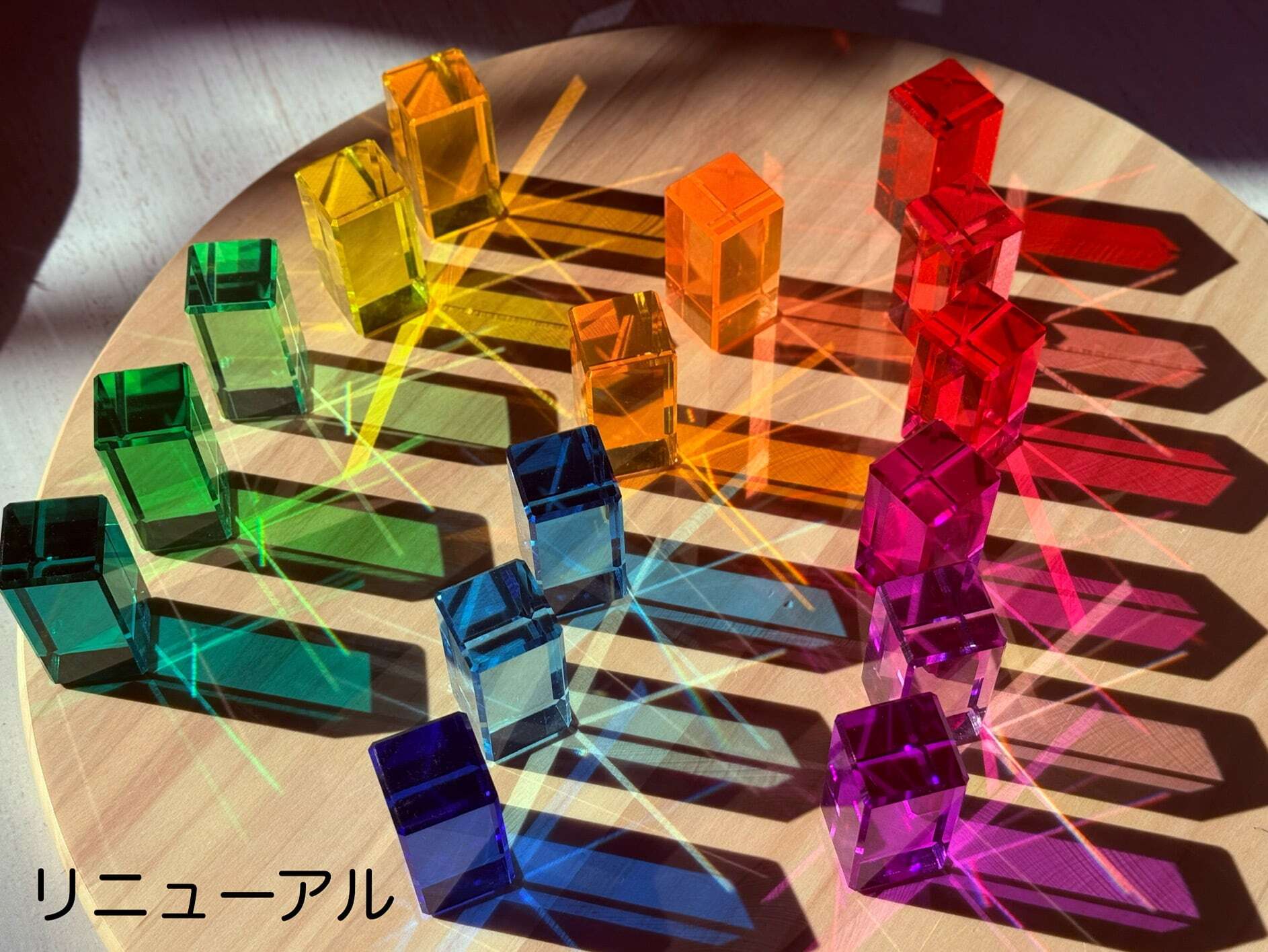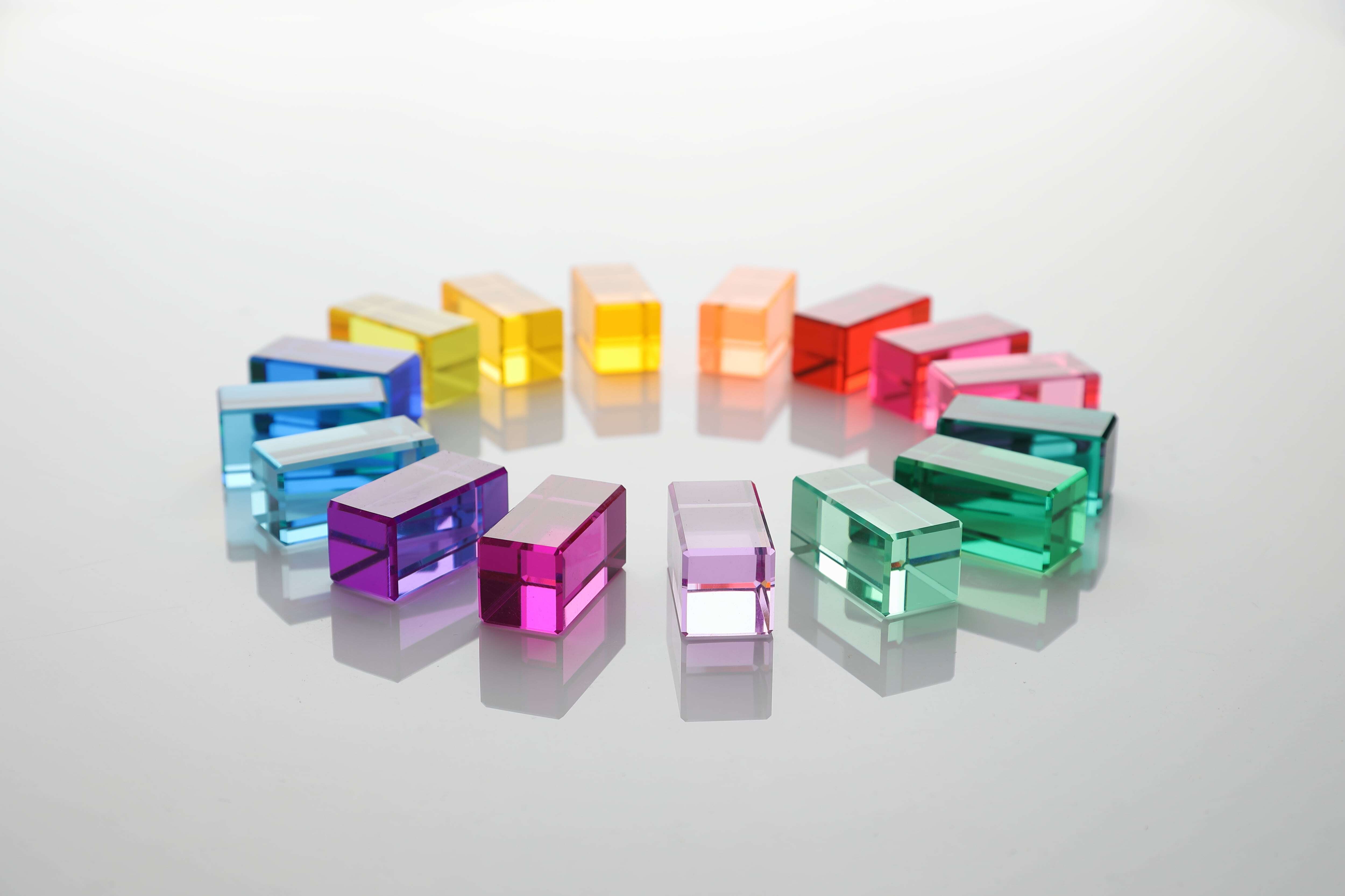 シャープな光線を放つアクリル積み木。