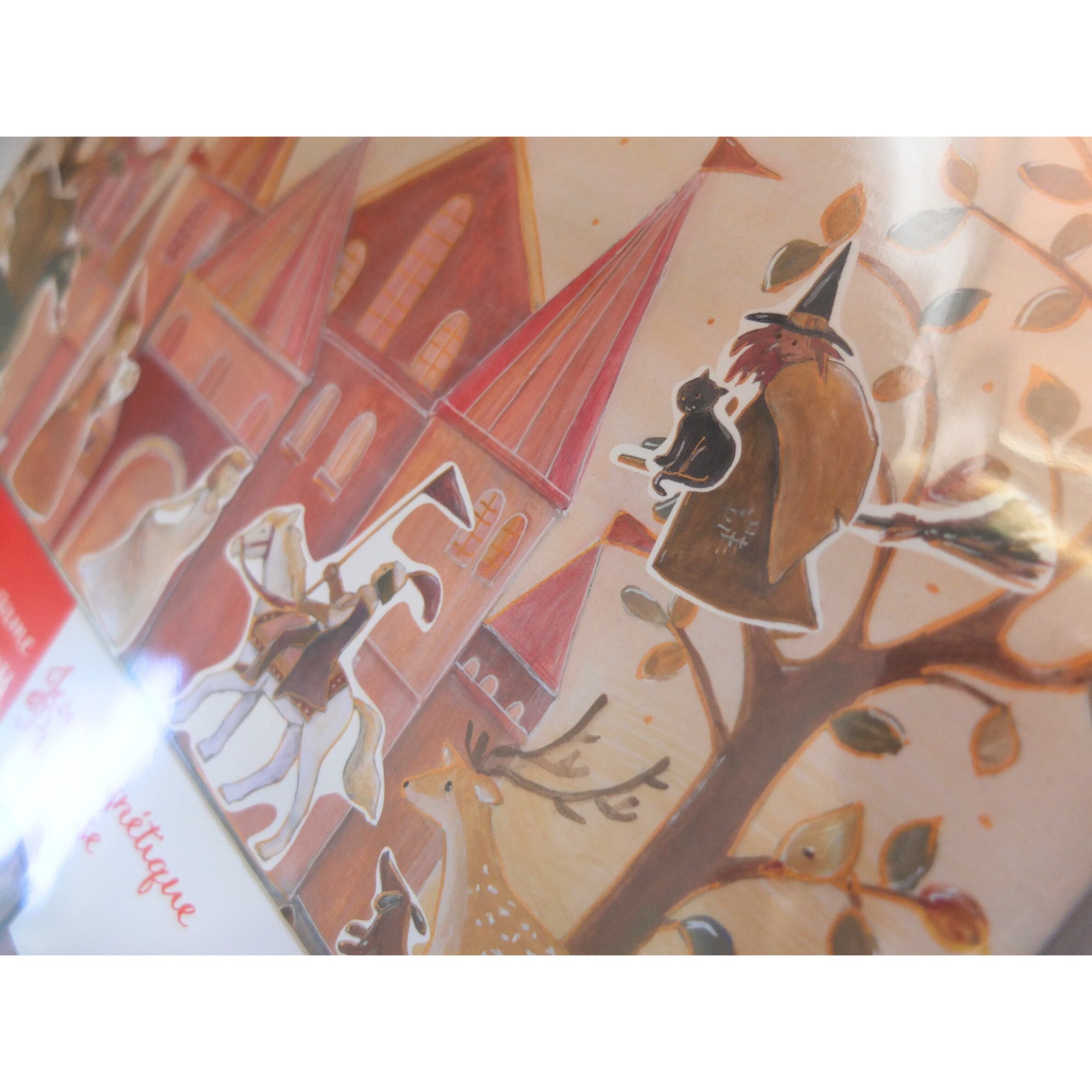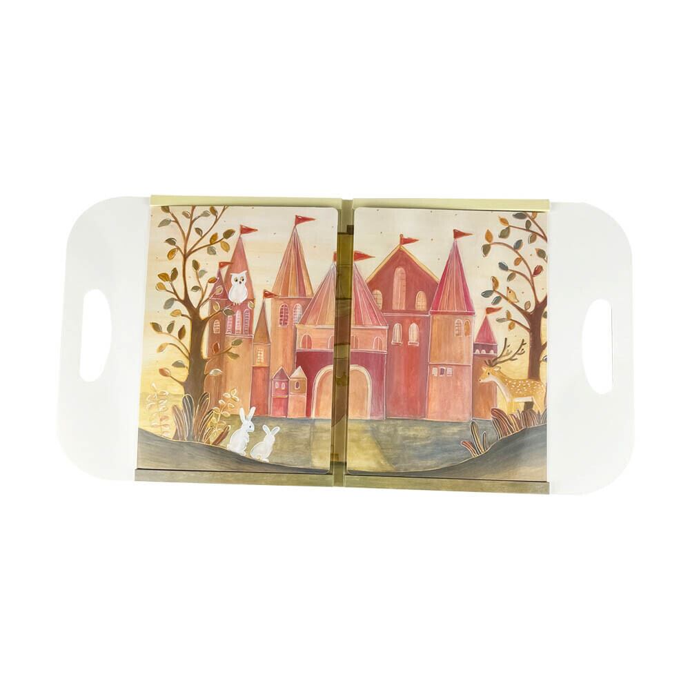 お城が舞台になっており、中を開くと城内の様子が描かれています。マグネットにはお城の家具や剣士、ドラゴンや魔法使いなどファンタジーな世界の物語を自分で作ることができます。