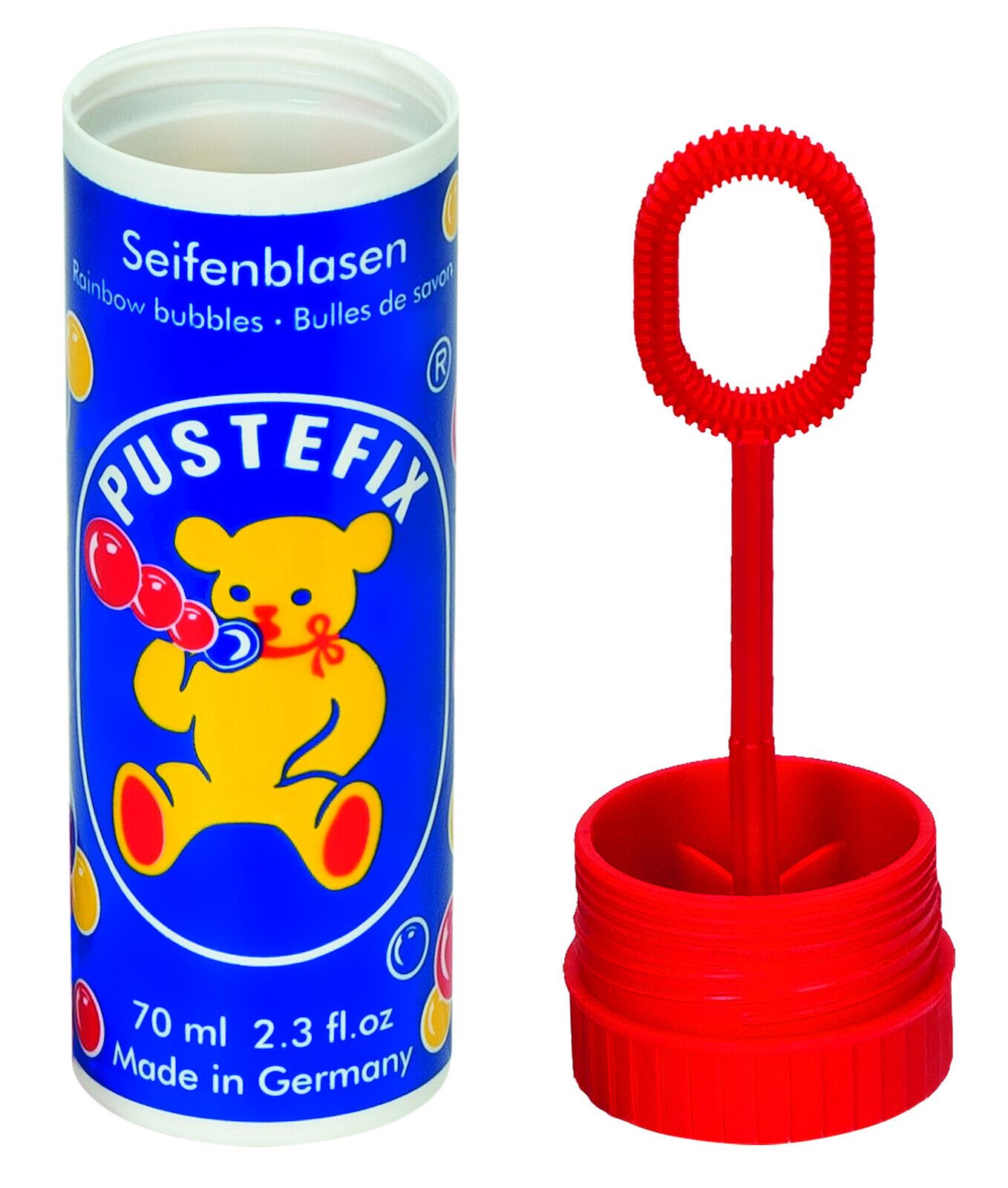 75年間もの長きにわたり、子供たちにシャボン玉を作り続けるドイツのPustefix(プステフィックス)。誰もが一度は遊んだり見かけた事のあるクマのシャボン玉のメーカーです。独自の研究と配合で作られたシャボン液は、割れづらく、美しく、もし誤飲してしまっても安全なシャボン玉で、世界中の子供たちに人気のアイテムです。