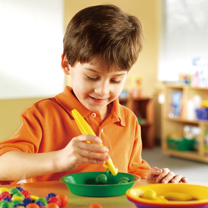 Learning Resourcesのジャンボピンセットは、人間工学に基づいたうねりが特徴のグリップ付きピンセット。赤・青・緑・黄・オレンジ・紫の6色セット。