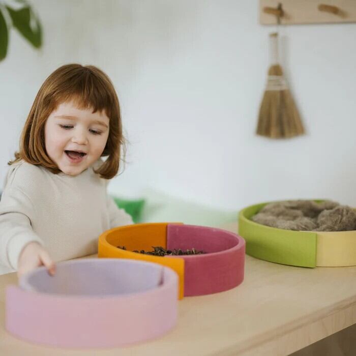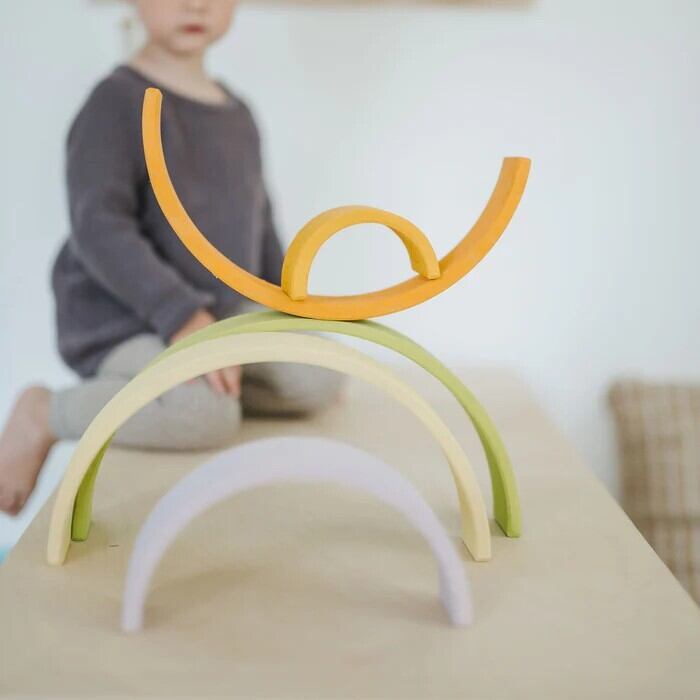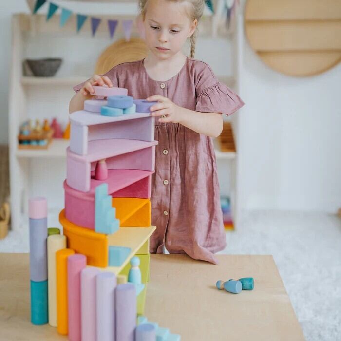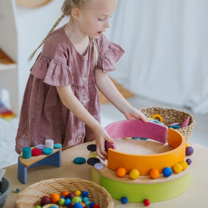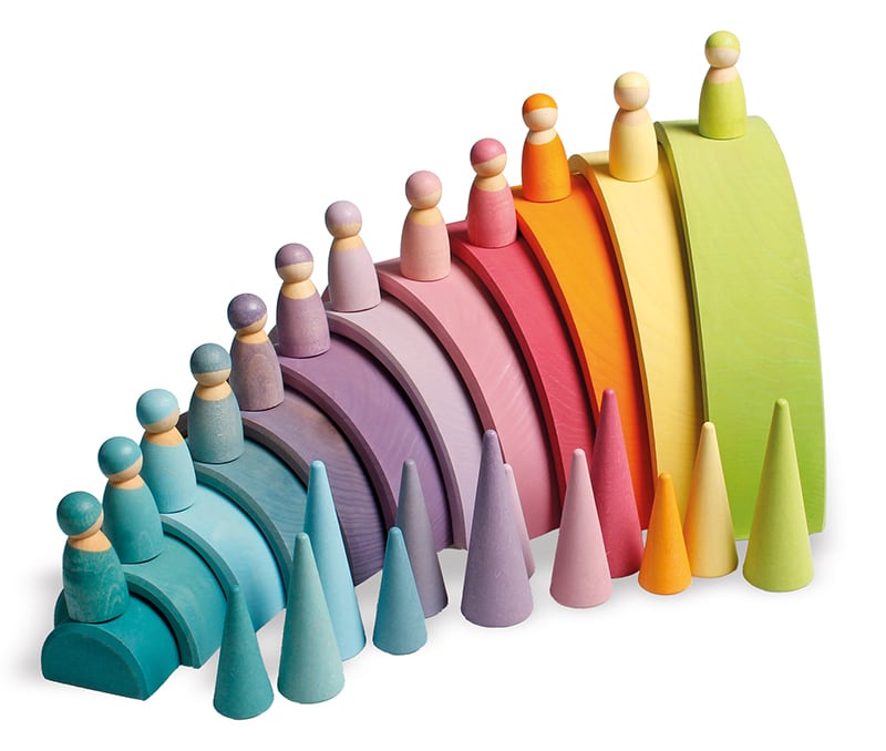 グリムス社は2006年8月、前身のSpiel und Holz Design社(所在地:エンクスティンゲン)より現オーナーへの交代を経てスタートしました。Spiel und Holz Design社の起源は1978年に遡ります。グリムス社は木を原料としたおもちゃをデザイン、製造し、世界各国に販売しています。木は、人が育て増やしていくことのできる資源です。そして木は、ザラザラ、なめらか…と表面の手触りも様々。そして手に取れば温かく、いい匂いもします。たたいた時の音さえ、重く響いたり、軽やかに聞こえたりします。長く愛されることを願い、「色彩のもたらす喜び」をお届けするため、こどもの玩具にふさわしい原料を使用しています。子どもが自分の感覚を頼りに身の回りの物を把握していく過程を、様々な側面からサポートし、豊かな五感の発達を促します。グリムス社が大切にしていることは、シンプルなデザインと調和の取れた色彩、フォルムからの一切の無駄を省き、使い手が遊びの中で自分の創造性を思いのままに羽ばたかせることのできるおもちゃを作ることです。色彩は自然界の「虹」の色をお手本としているので、このおもちゃを手に取った人たちの心に様々な表情で語りかけ、色彩の喜びに溢れた世界へとお誘いします。