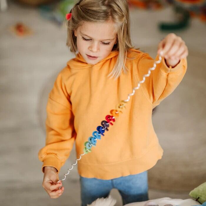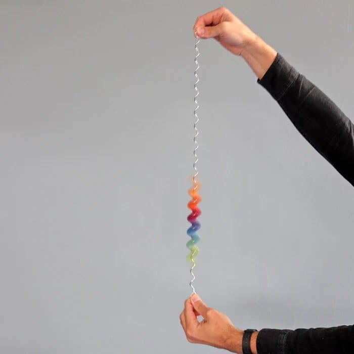 リング型パーツが、スパイラル状の丈夫なアルミ棒をつたって降りていきます。