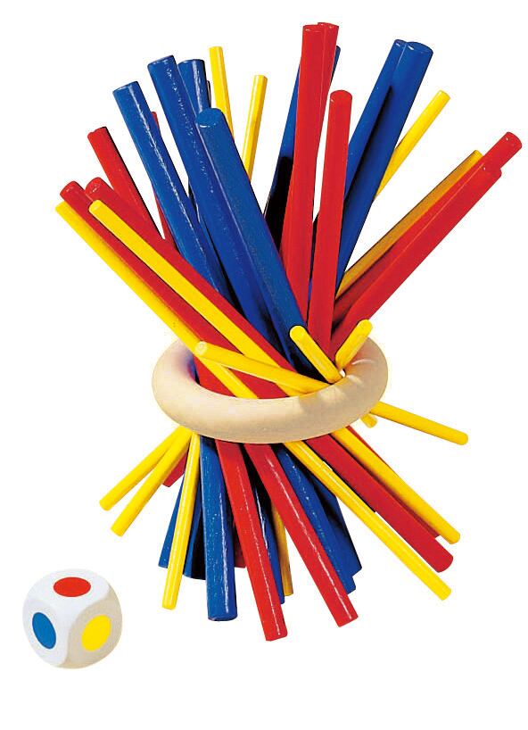 サイコロを振り、出た色のスティックを崩さないように抜き取ります。どのスティックが抜きやすいかよく観察してください。