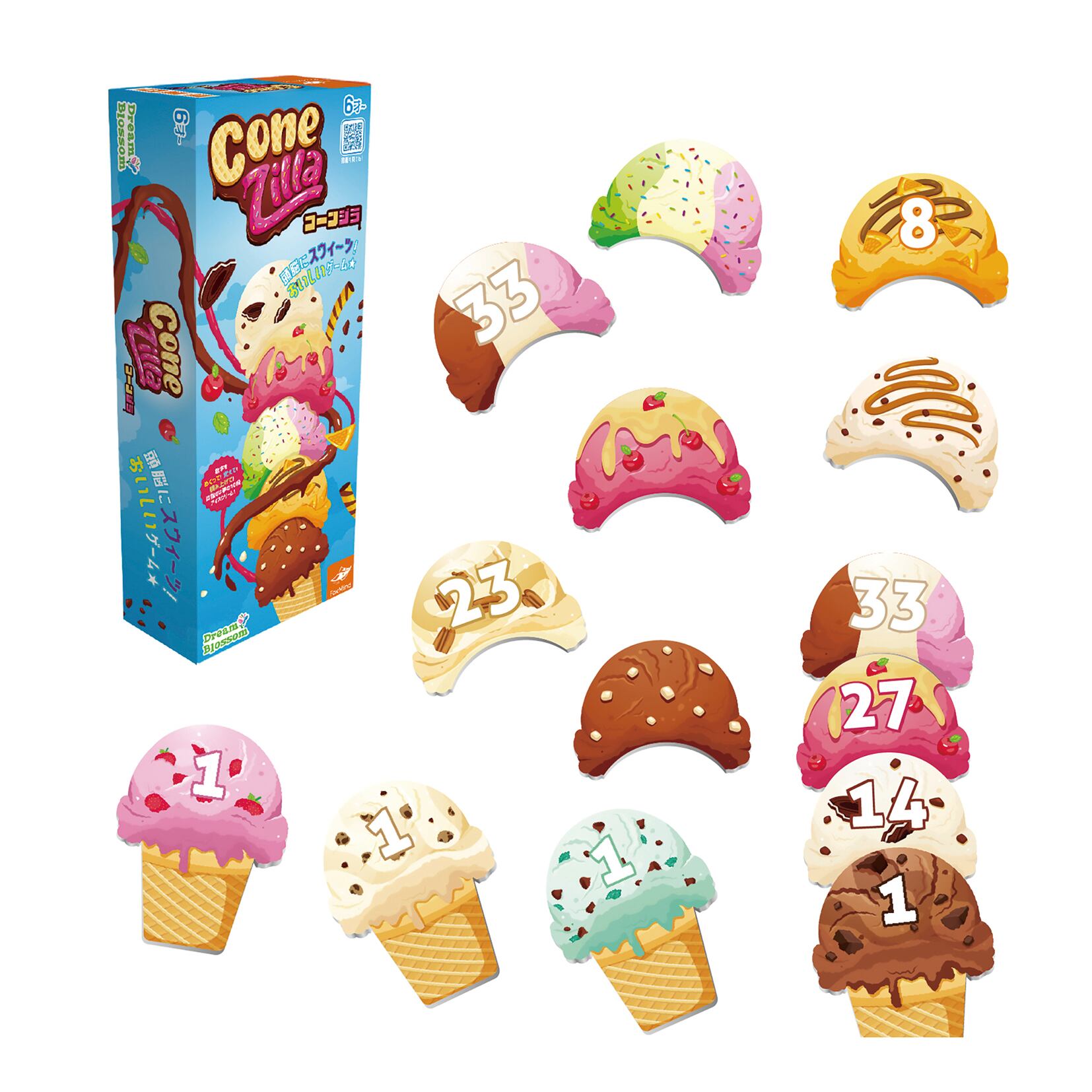 カラフルなアイスを10個積み上げて、誰よりもはやく高いアイスクリームを作りましょう!ルールはシンプル。アイスを1枚めくり、手持ちの一番上のアイスより大きな数字が出れば、その上に繋げていくだけです。繋げられなかったアイスは裏返して戻すので、欲しいアイスの場所を覚えておく神経衰弱の要素もあり、楽しく遊びながら”かず”を学ぶことができます。