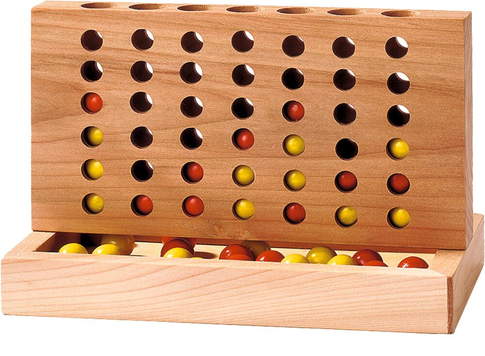 交互に玉を落としていき、先に縦・横・ななめのいずれかに4つ並べた人の勝ち。