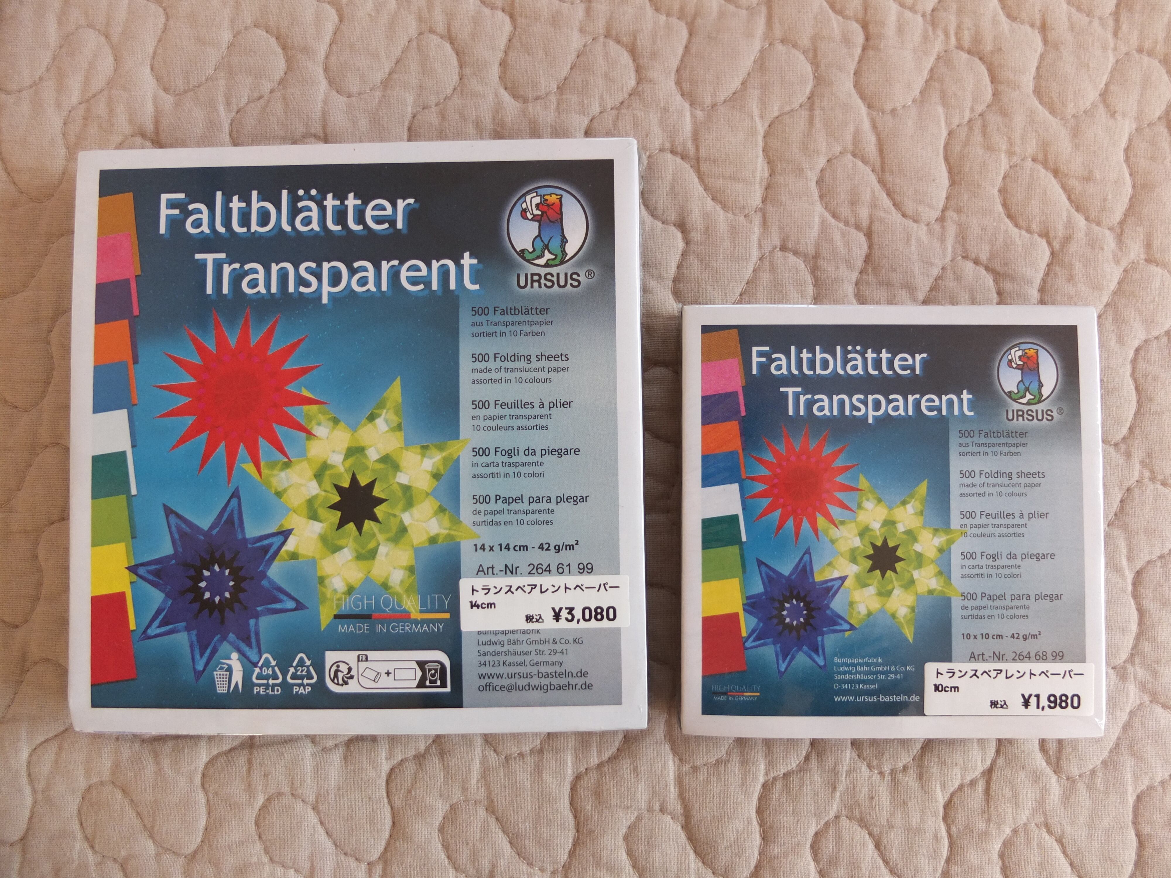 表紙のようなトランスパレントスターやランタンなど工作用の透ける折り紙です。