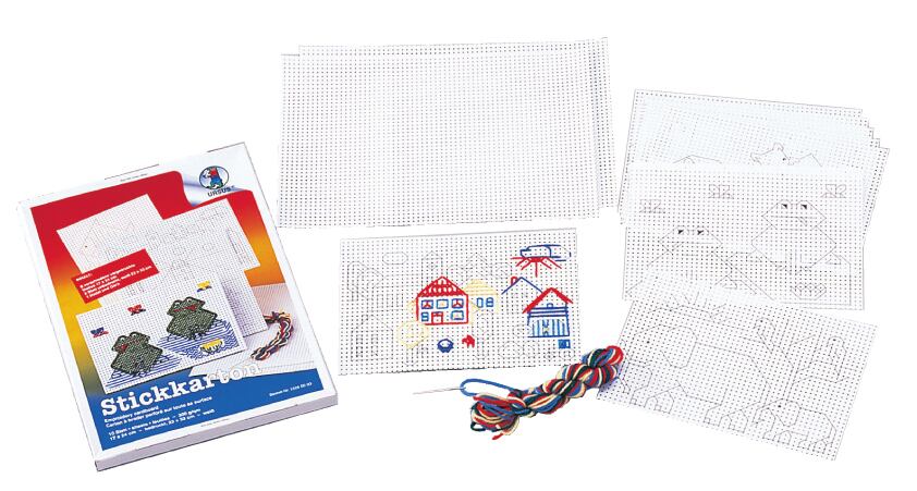台紙10枚(柄付8枚・無地2枚)・毛糸・針
