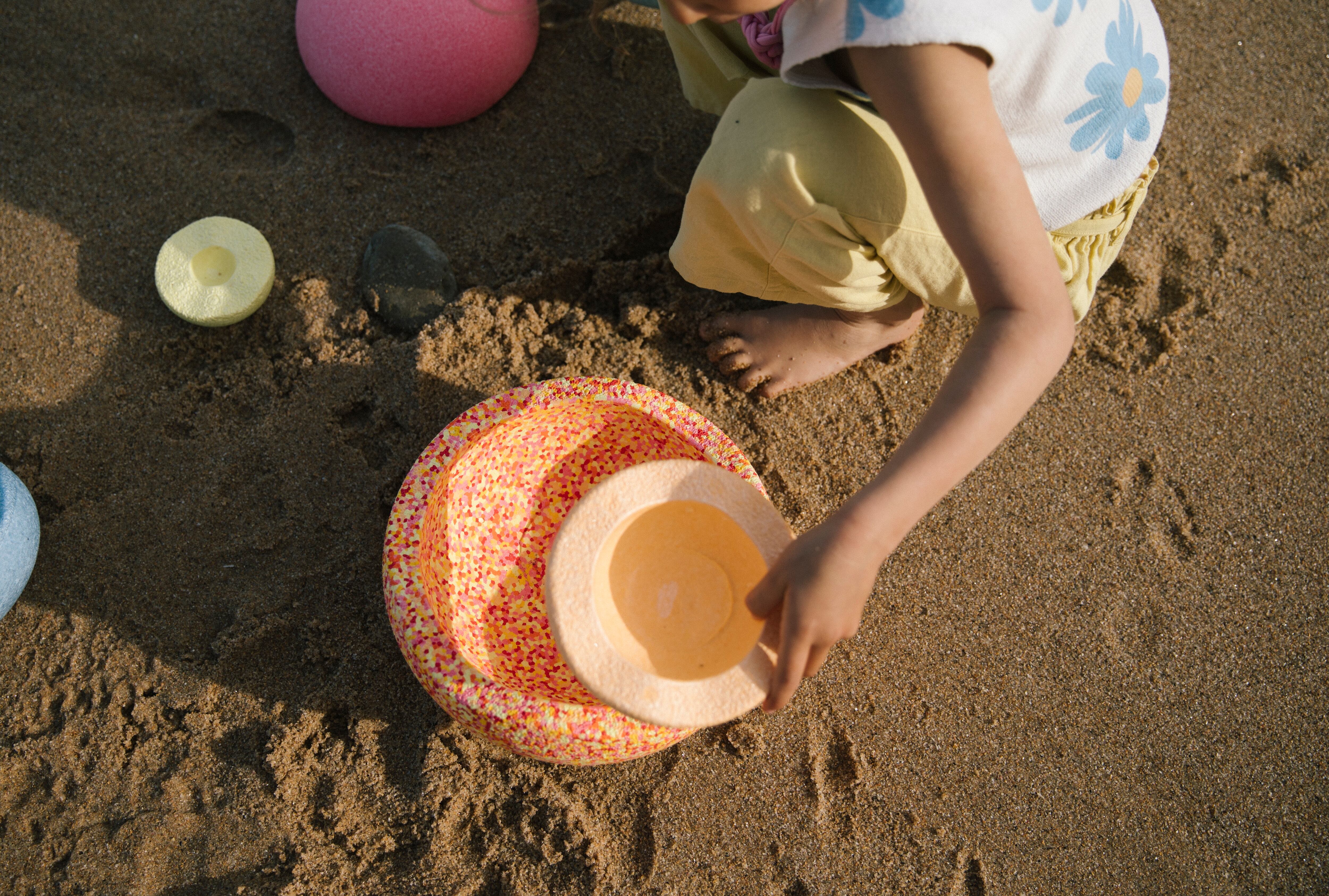 そして回したり、コロコロ転がしたり、大きなお鍋と見立てたおままごと、投げたボールをストーンでキャッチ、カーリングのように滑らせたり、、などなど様々な遊びに活躍します。