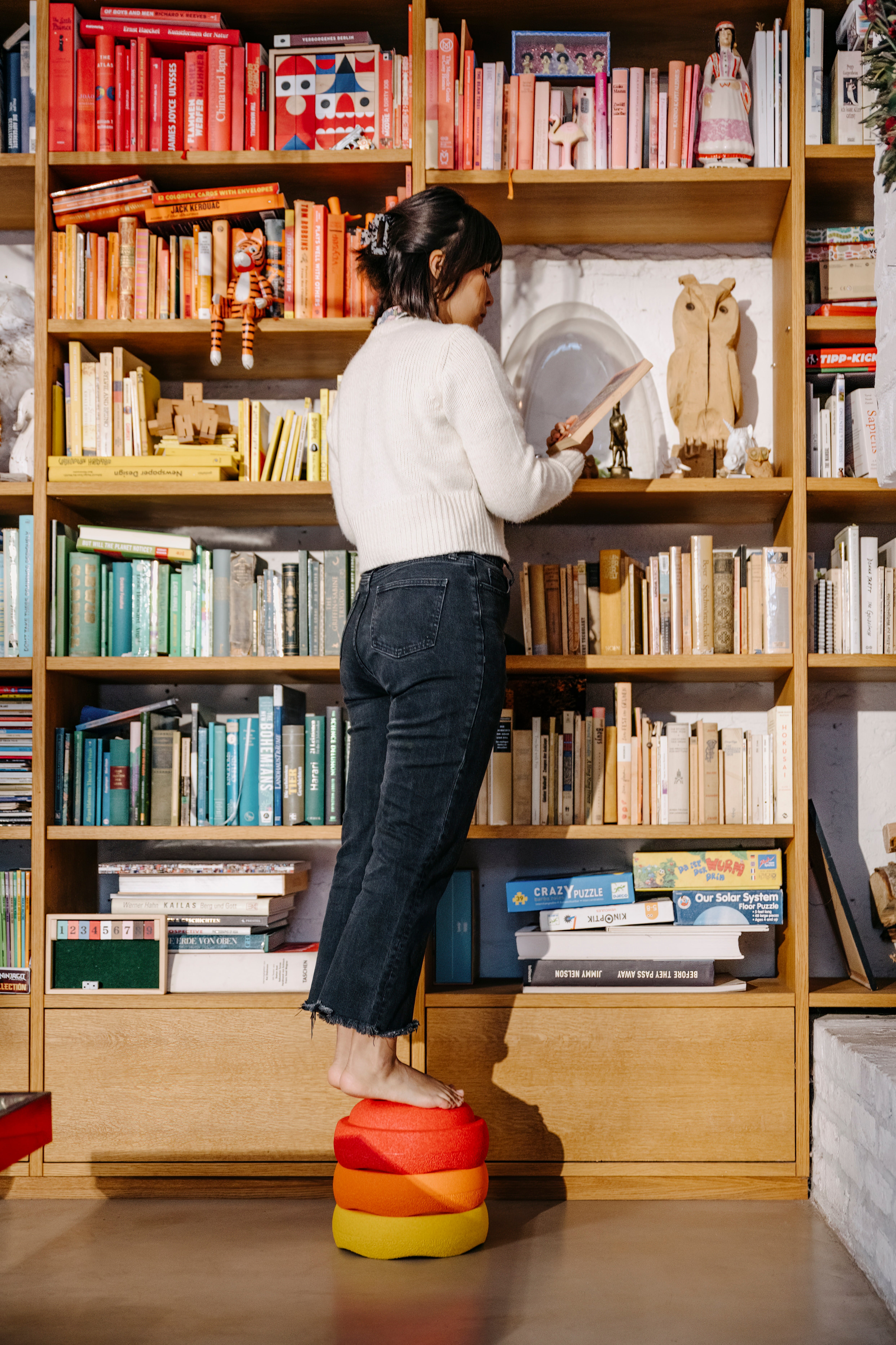 遊びだけでなく、椅子にしたり、踏み台にしたり、スタッキングストーンOriginalの使い方は多種多様。とても便利な遊べる家具としても大活躍。