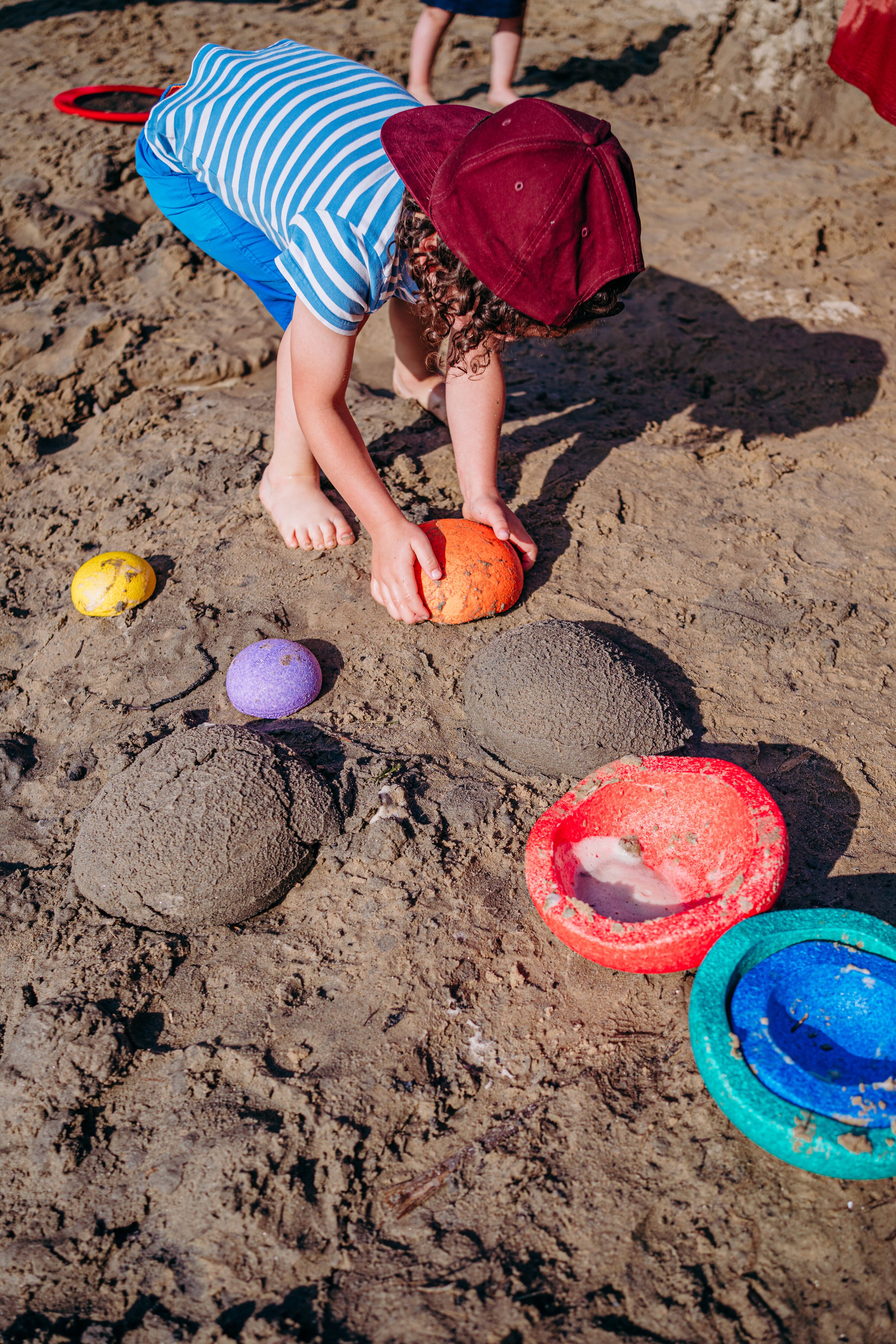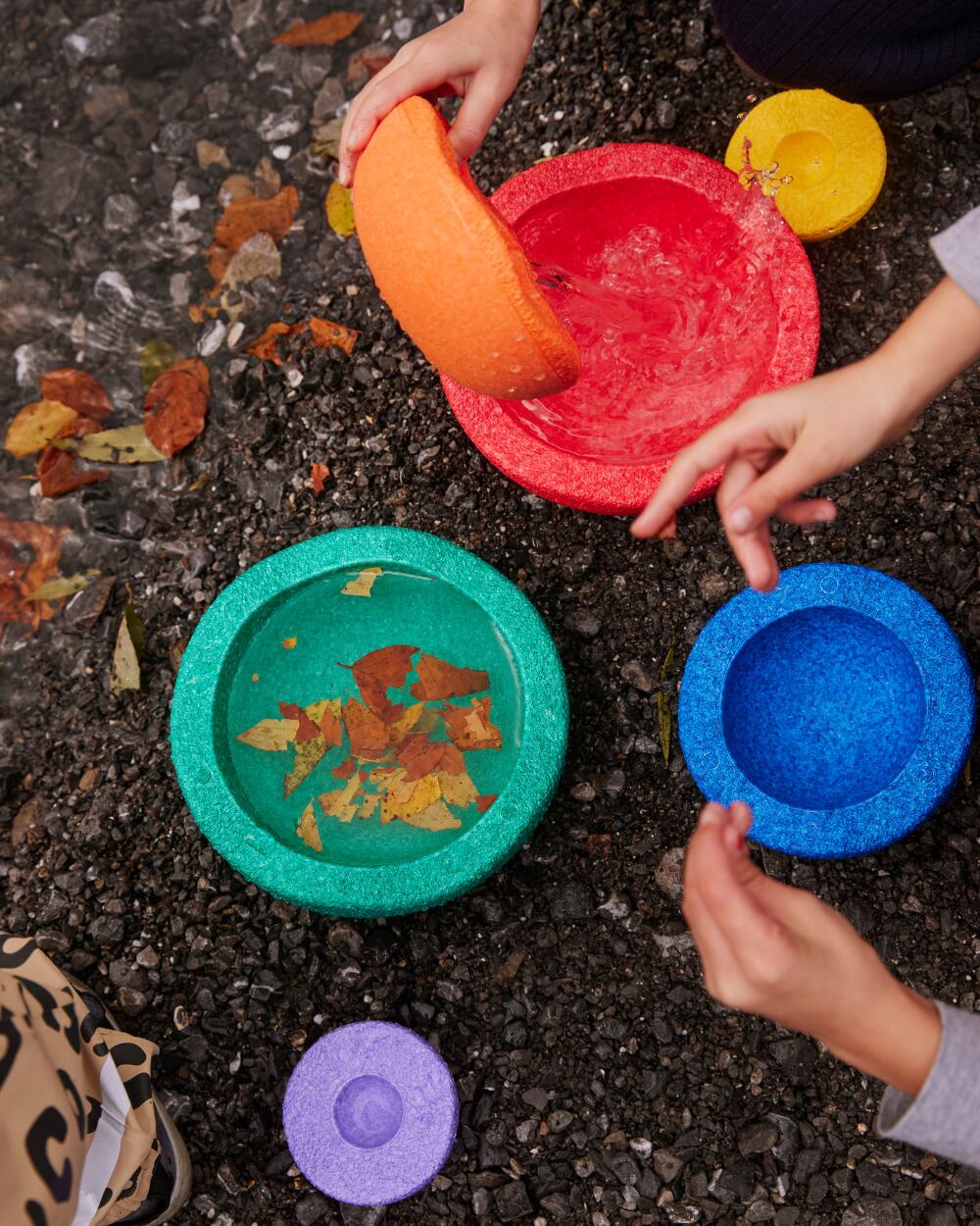 大きさの順番を理解したり、大きさの違いで使い分けをしたり、叩いても違う音がします(水に浮かべて叩くとさらに)。そうした「違う」ことを楽しむことができます。