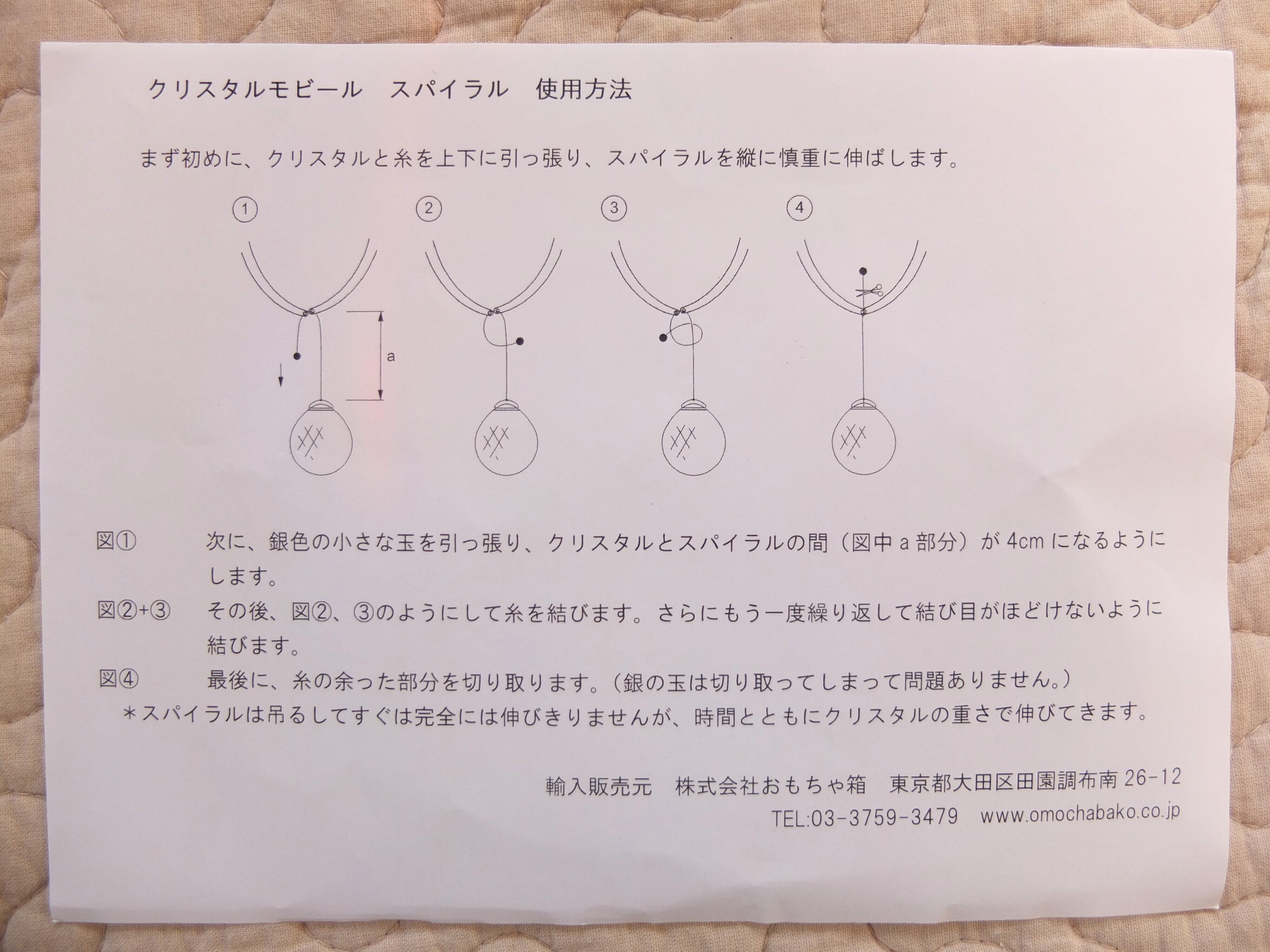 らせん状にデザインされたモビールは回転するごとに表情を大きく変えながら、窓辺や室内空間を彩ります。繊維がとても軽いので、すくない風でも良く回ります。
