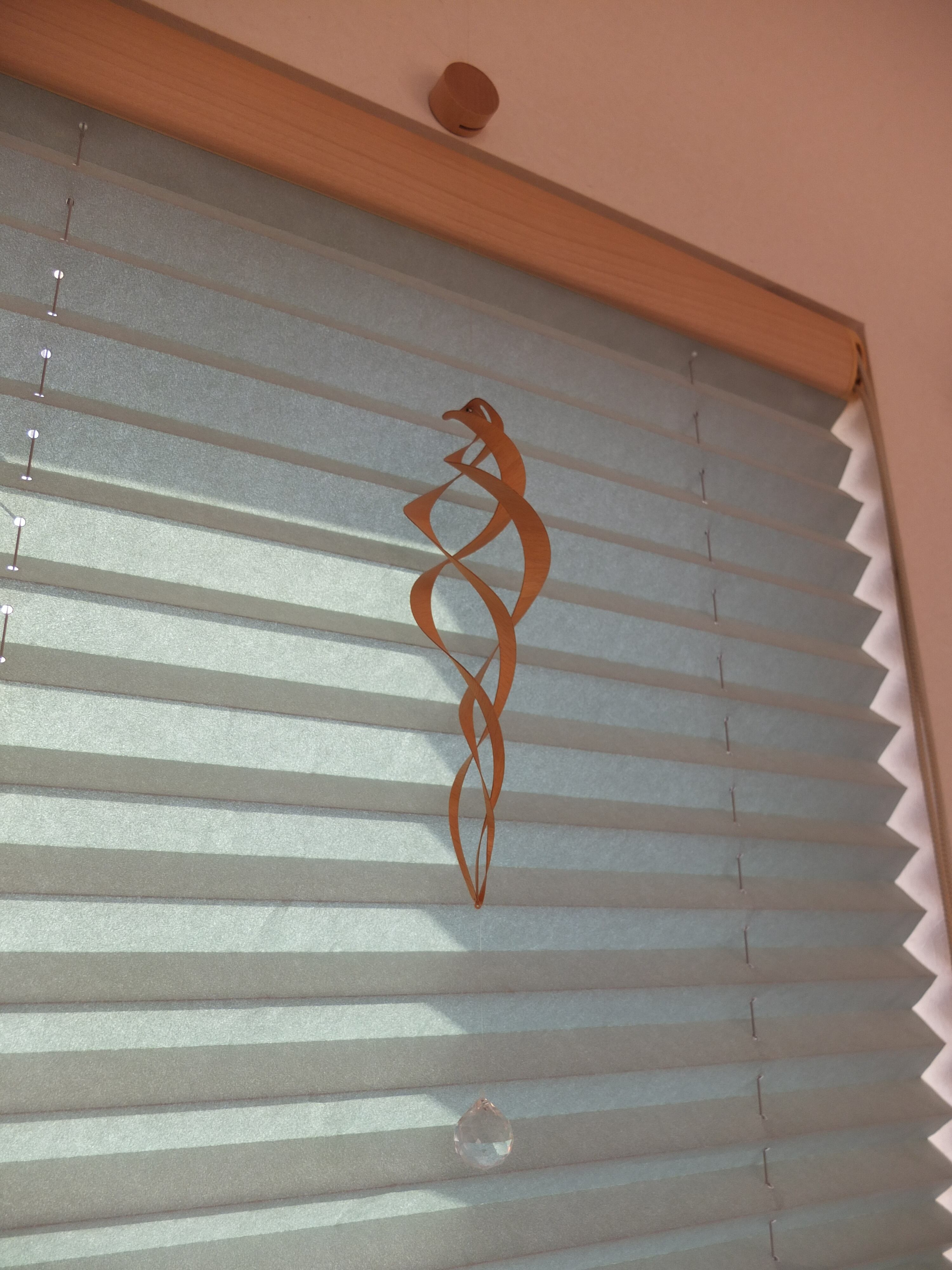 カエデの薄板が作り出す曲線が特長のクリスタルモビール。