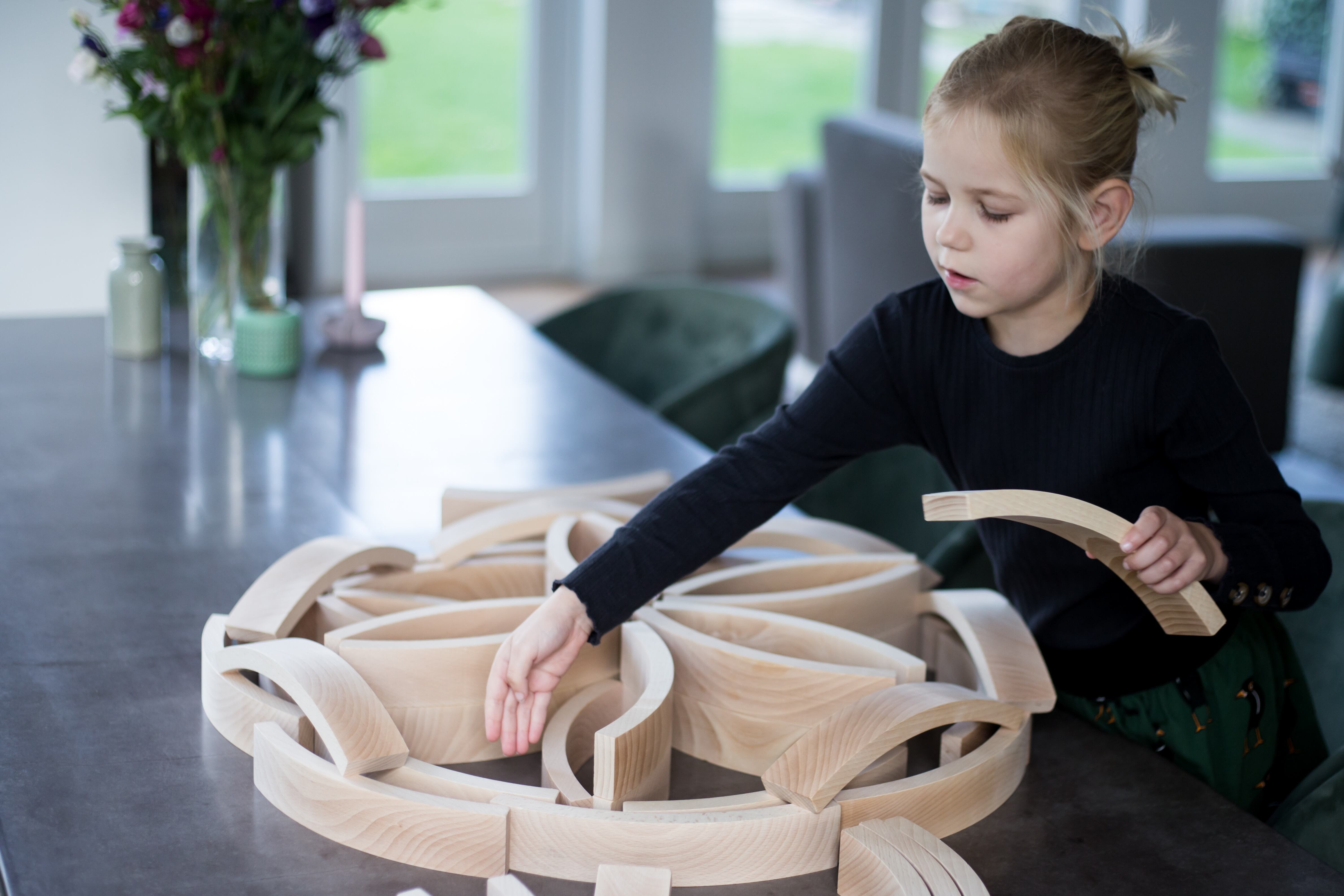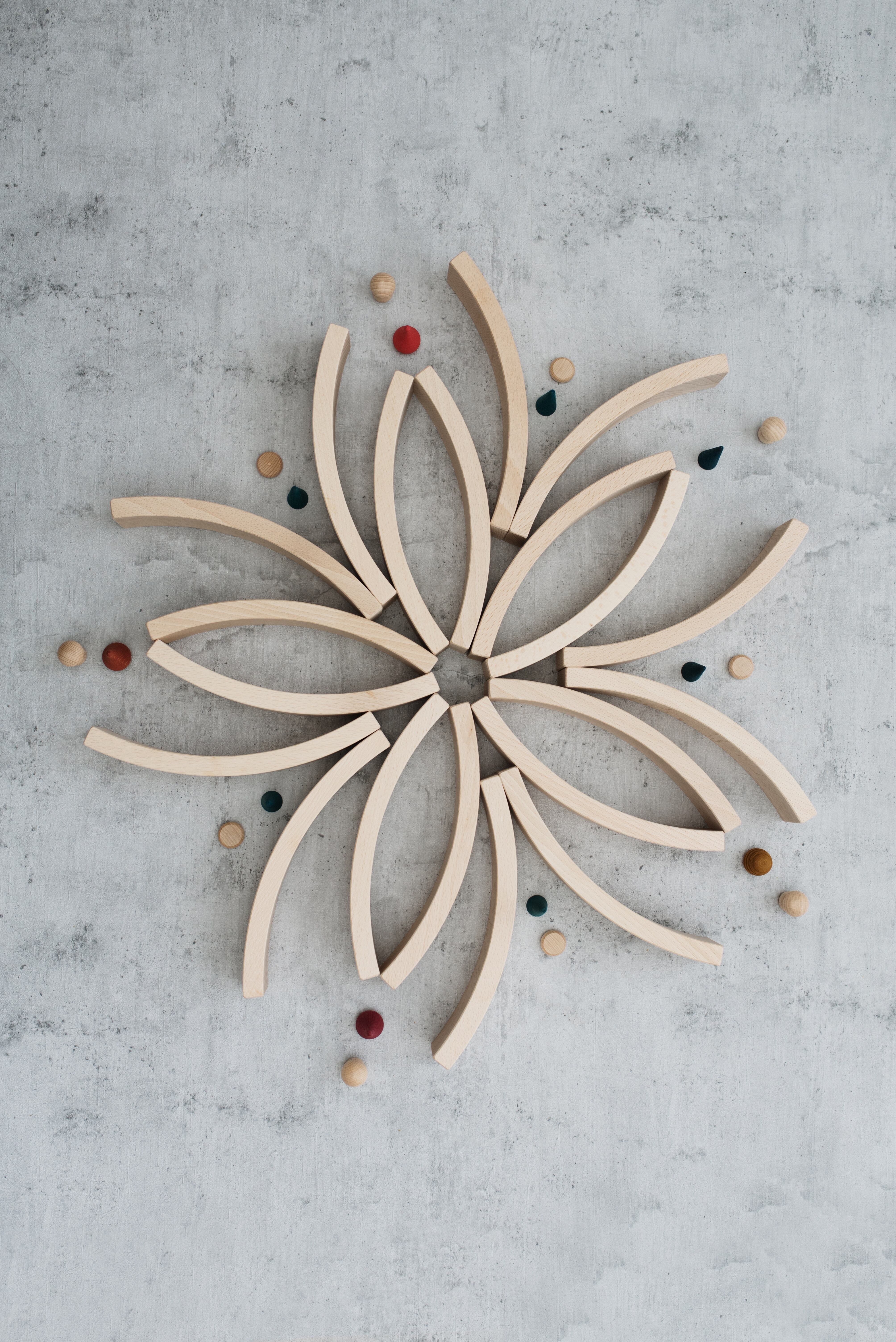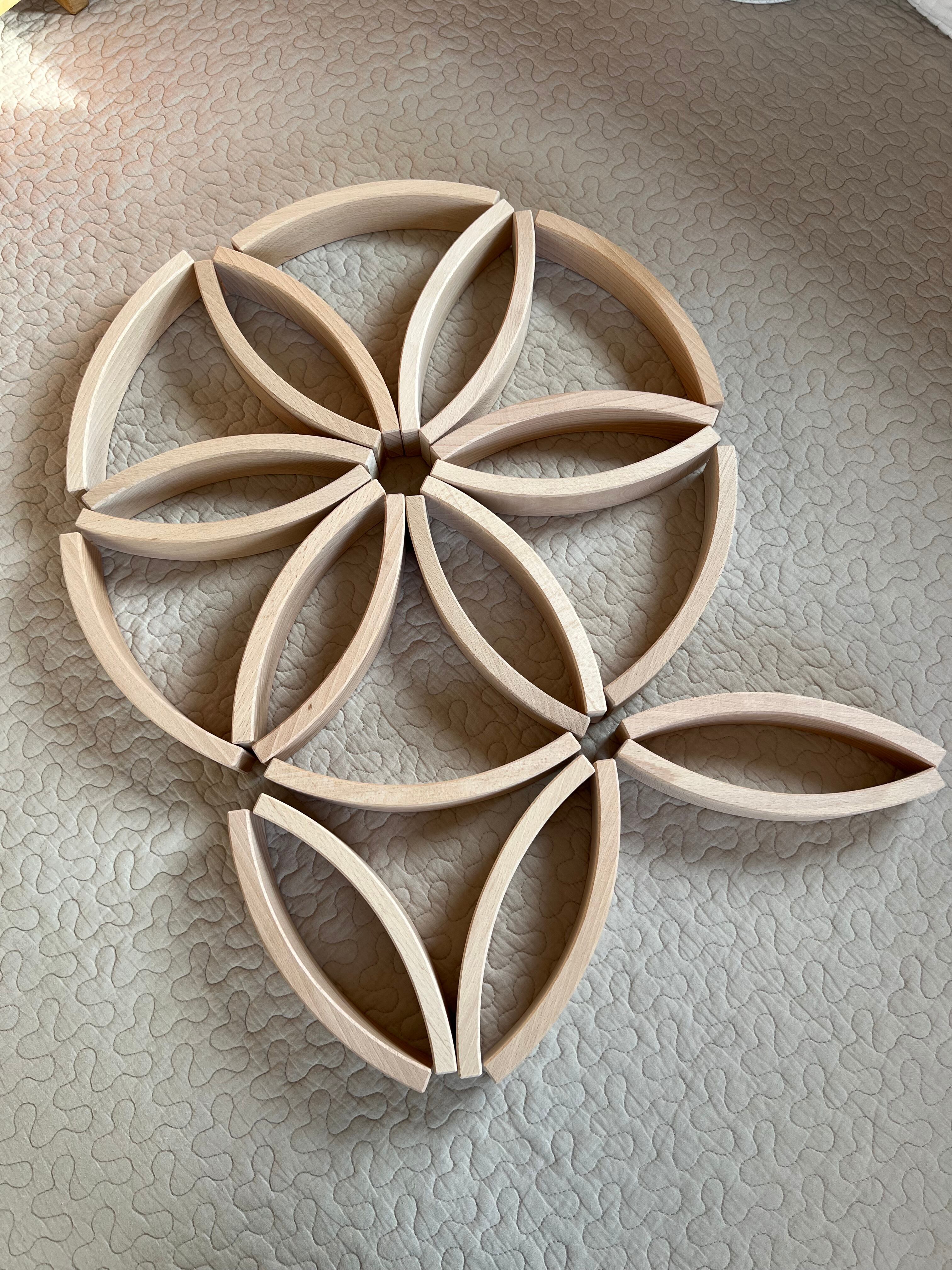 ファンタジーの世界を創ったり、論理的思考を育むバランスゲームや曼荼羅模様創りなどの遊びができます。創造的な遊びのために他の積み木と組み合わせて遊ぶことで遊びかたは無限大。