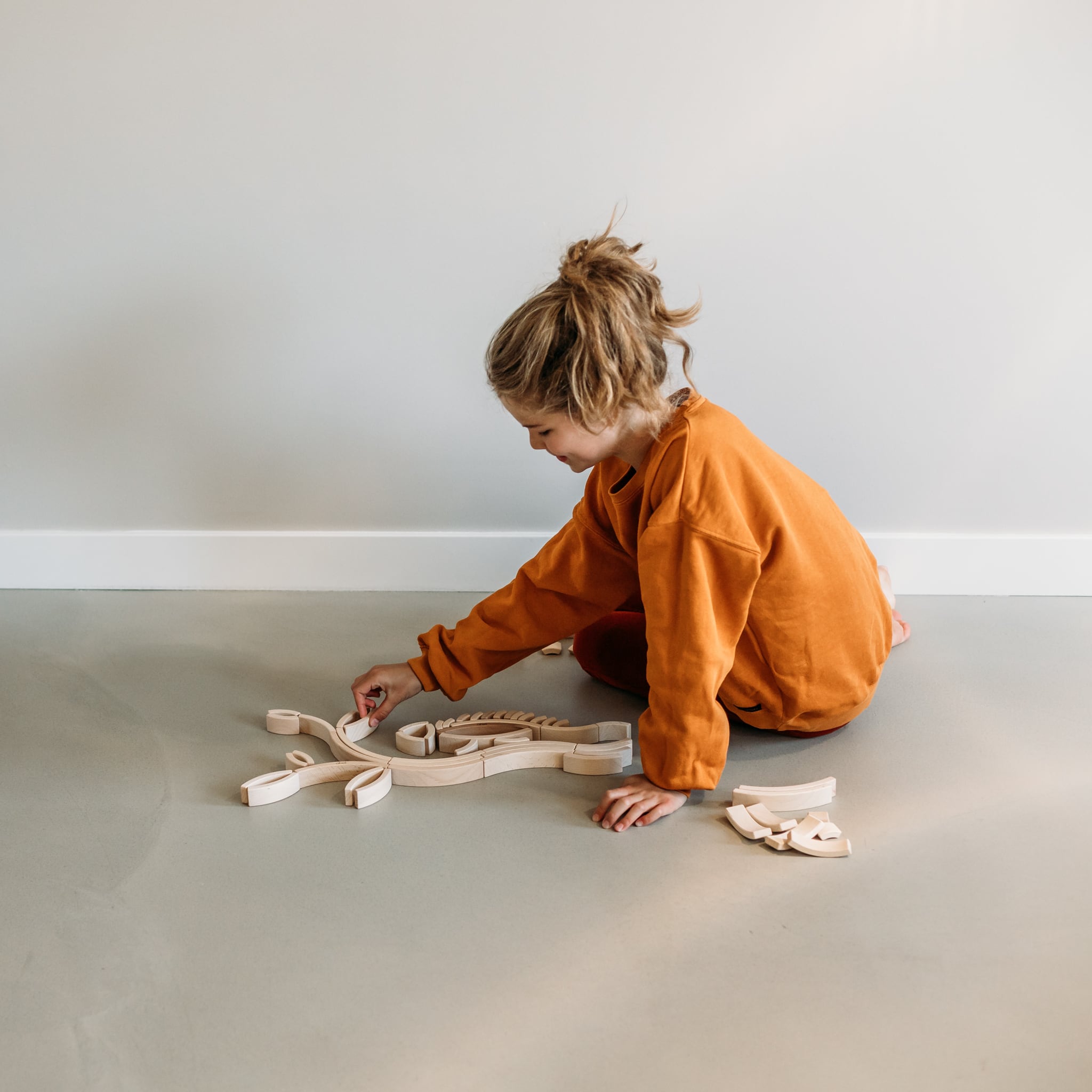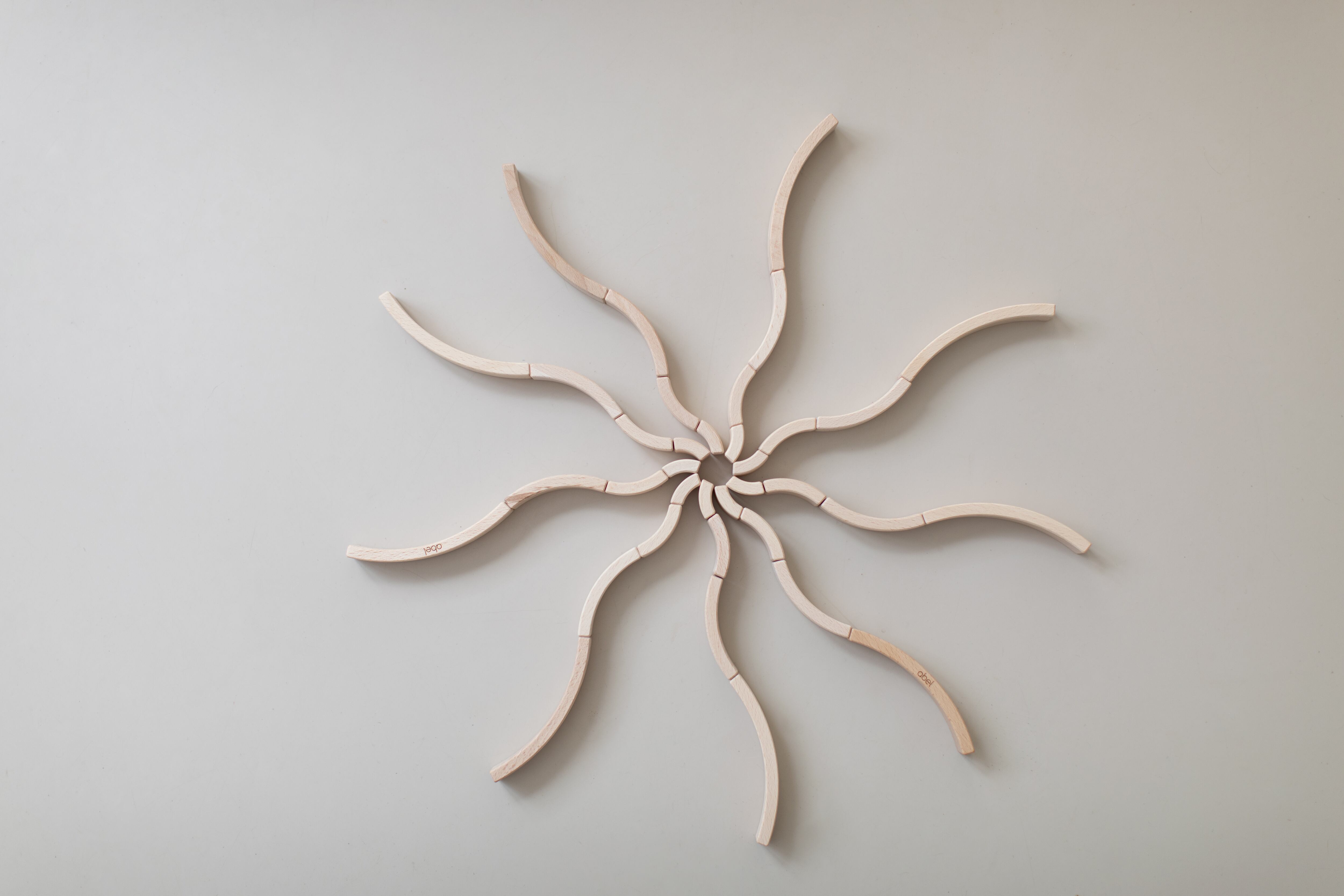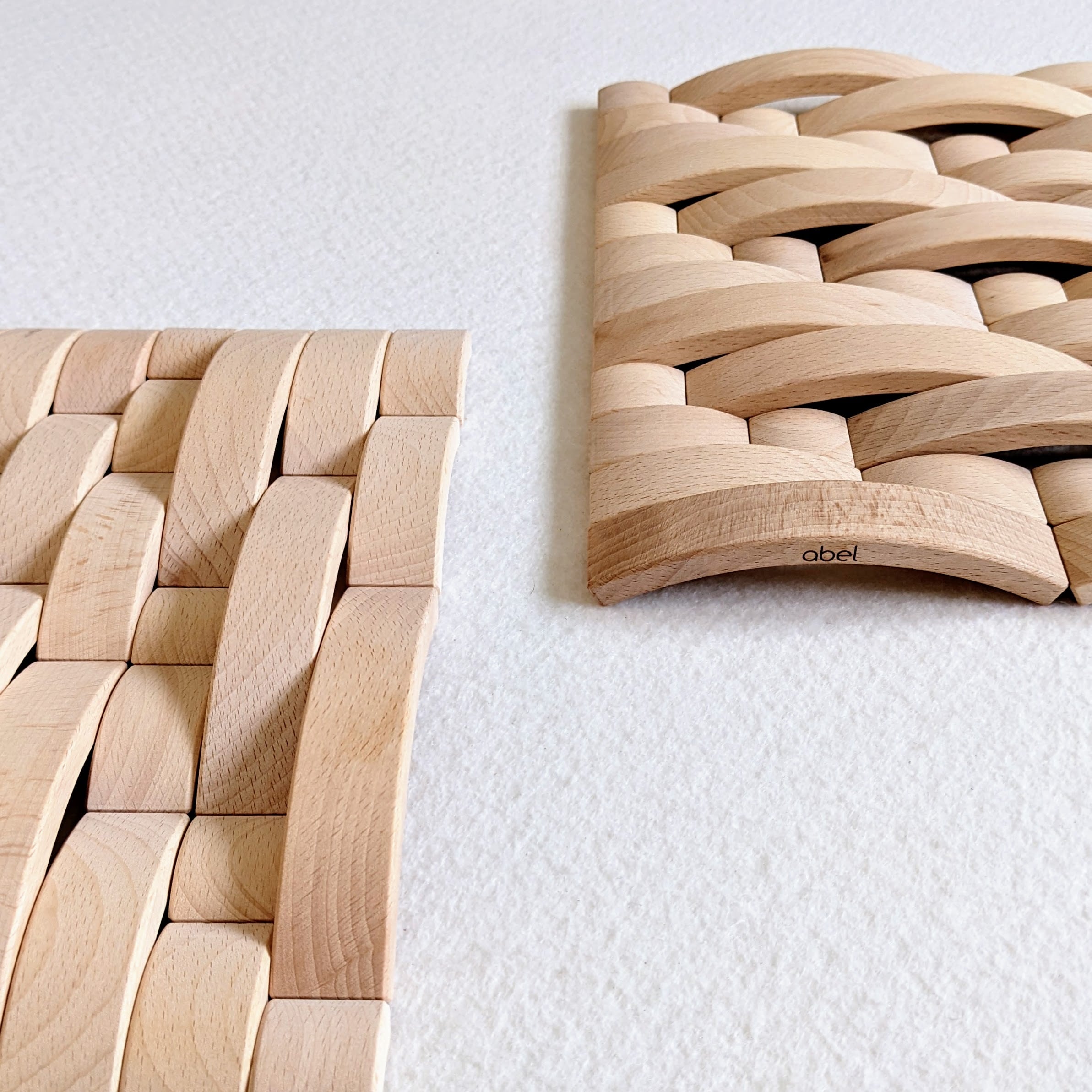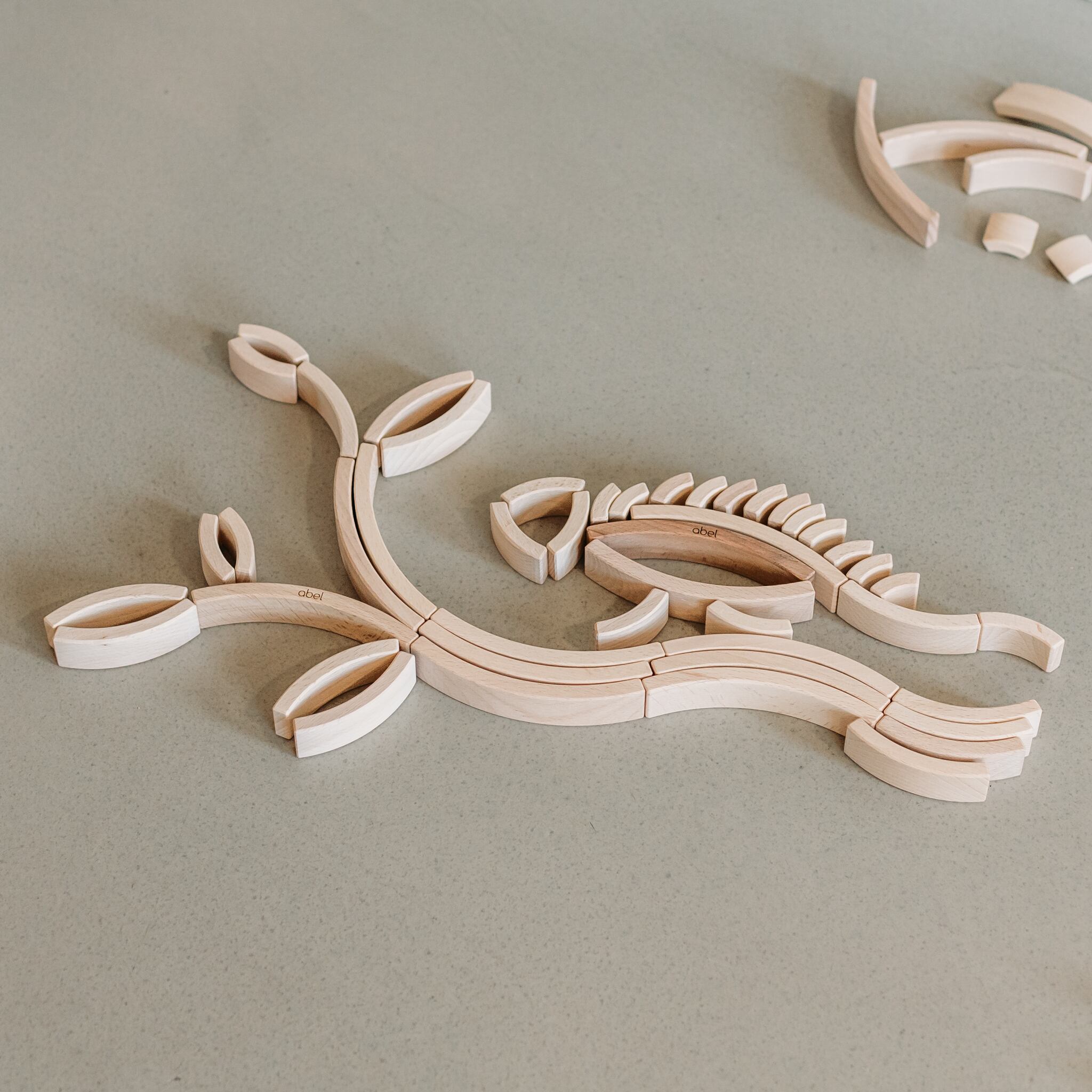 オランダのJelmer,Folko兄弟によってデザインされたabelブロックはFSCヨーロッパブナを素材として手作業で作られています。積み木は美しいカーブを描き、暖かみのある肌触り。自然な仕上がりは美しい木目を際立せます。