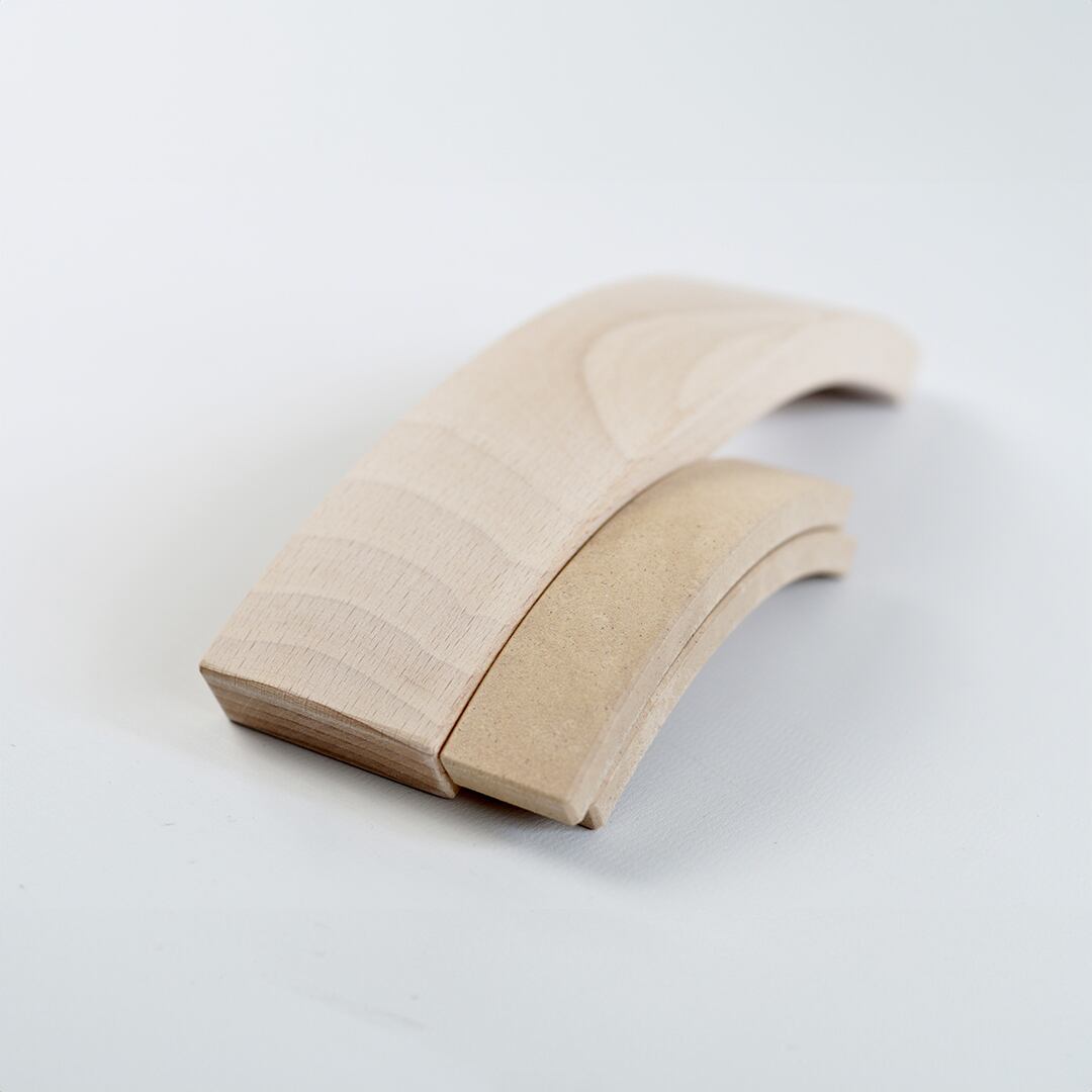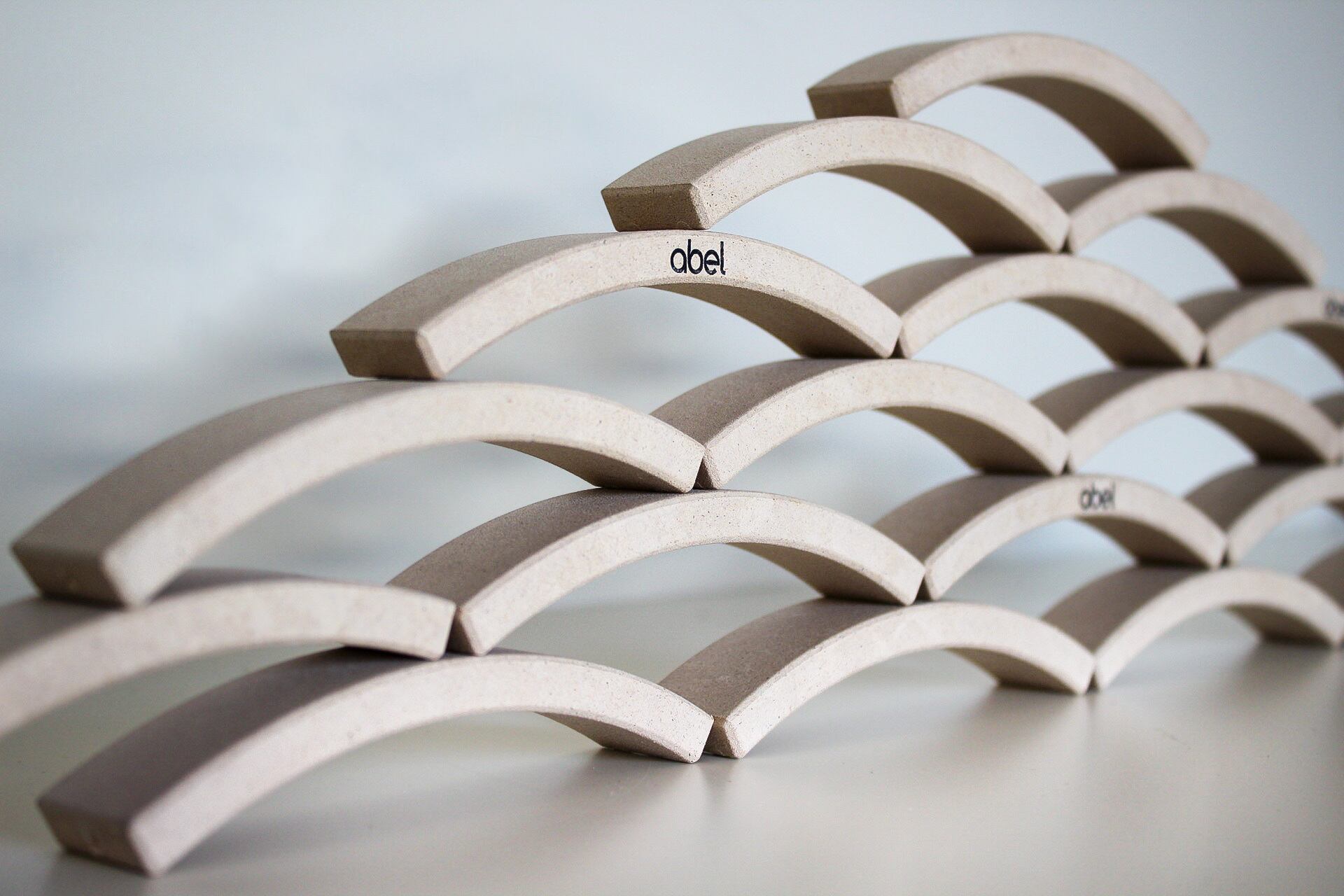 オランダのJelmer,Folko兄弟によってデザインされたabelブロックはFSCヨーロッパブナを素材として手作業で作られています。積み木は美しいカーブを描き、暖かみのある肌触り。自然な仕上がりは美しい木目を際立せます。