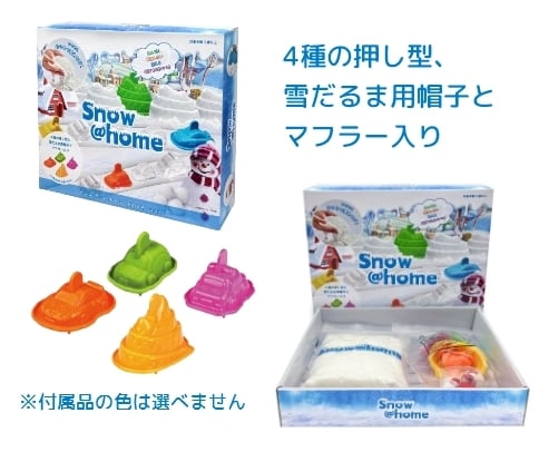 300gのスノーアットホームと4種の押し型、雪だるま用帽子とマフラーが付属します。