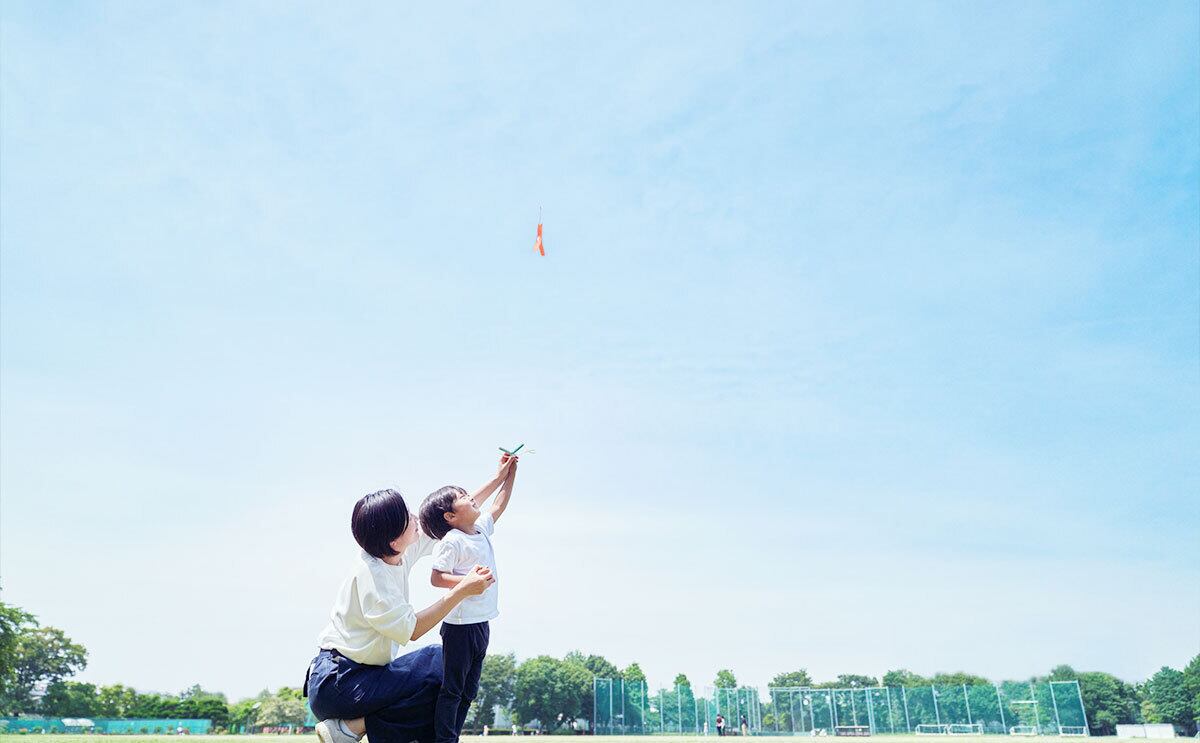 落下するスカイコプターをうまくキャッチ!大人から子供まで、家族でも原っぱで盛り上がります。