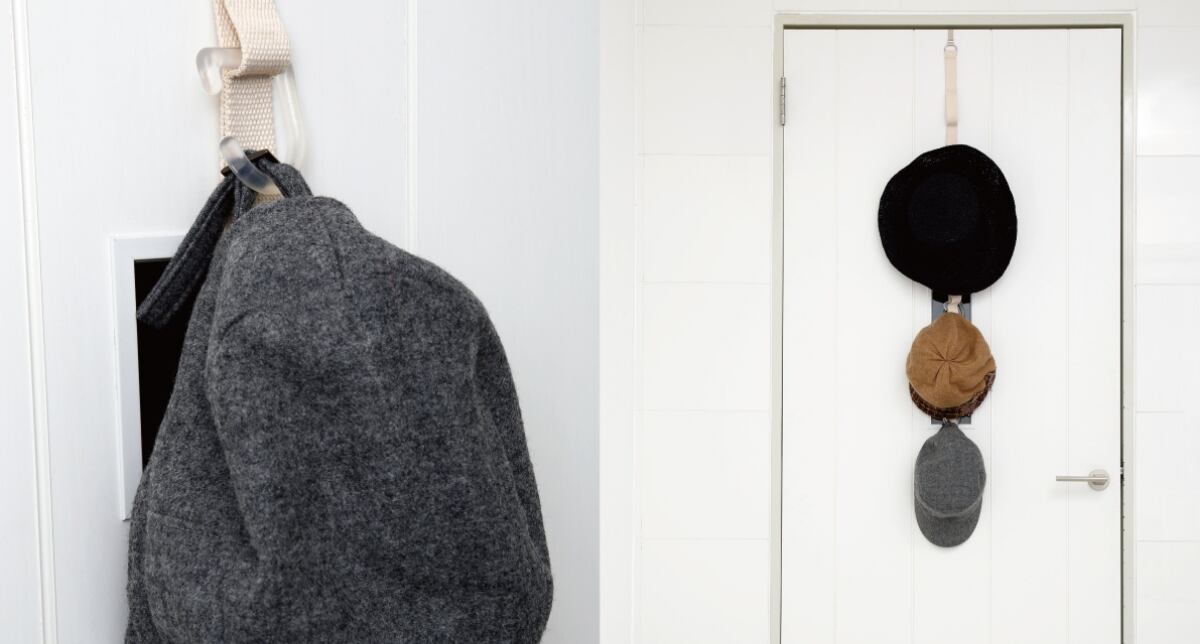 透明フックを使えば帽子やカバンも収納可能。