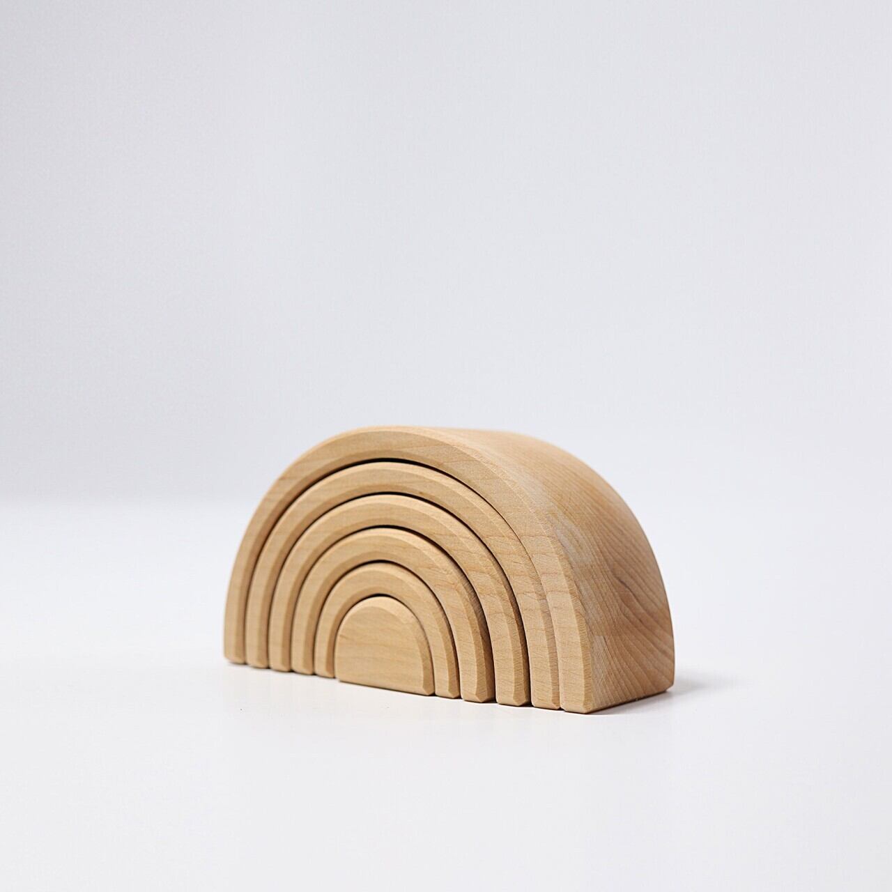 グリムス社は2006年8月、前身のSpiel und Holz Design社(所在地:エンクスティンゲン)より現オーナーへの交代を経てスタートしました。Spiel und Holz Design社の起源は1978年に遡ります。グリムス社は木を原料としたおもちゃをデザイン、製造し、世界各国に販売しています。木は、人が育て増やしていくことのできる資源です。そして木は、ザラザラ、なめらか…と表面の手触りも様々。そして手に取れば温かく、いい匂いもします。たたいた時の音さえ、重く響いたり、軽やかに聞こえたりします。長く愛されることを願い、「色彩のもたらす喜び」をお届けするため、こどもの玩具にふさわしい原料を使用しています。子どもが自分の感覚を頼りに身の回りの物を把握していく過程を、様々な側面からサポートし、豊かな五感の発達を促します。グリムス社が大切にしていることは、シンプルなデザインと調和の取れた色彩、フォルムからの一切の無駄を省き、使い手が遊びの中で自分の創造性を思いのままに羽ばたかせることのできるおもちゃを作ることです。色彩は自然界の「虹」の色をお手本としているので、このおもちゃを手に取った人たちの心に様々な表情で語りかけ、色彩の喜びに溢れた世界へとお誘いします。
