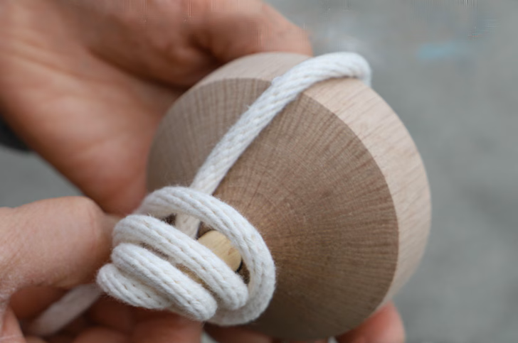 紐で回すコマに挑戦する場合、一番のつまづきポイントが紐を巻く時、巻いてる途中で紐がずれてグシャグシャになりがち・・・