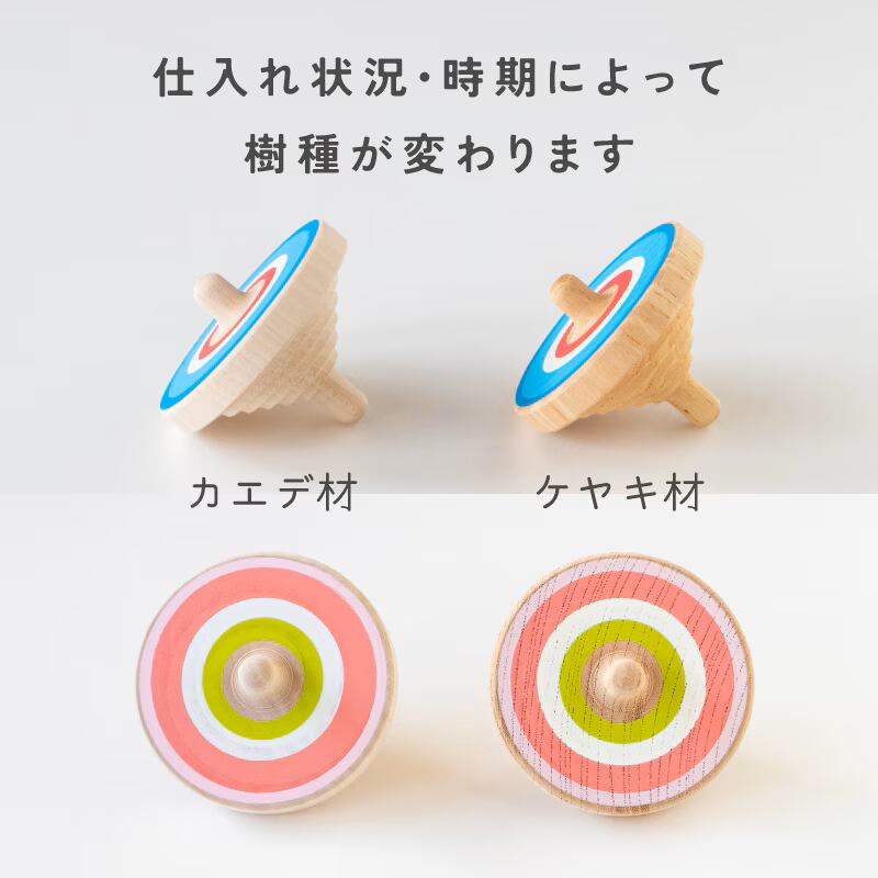 昔ながらのコマに加え、赤ちゃんがなめても安全な木製玩具を、コマ作りの「丸みを削り出す」伝統技術を生かして作っています。