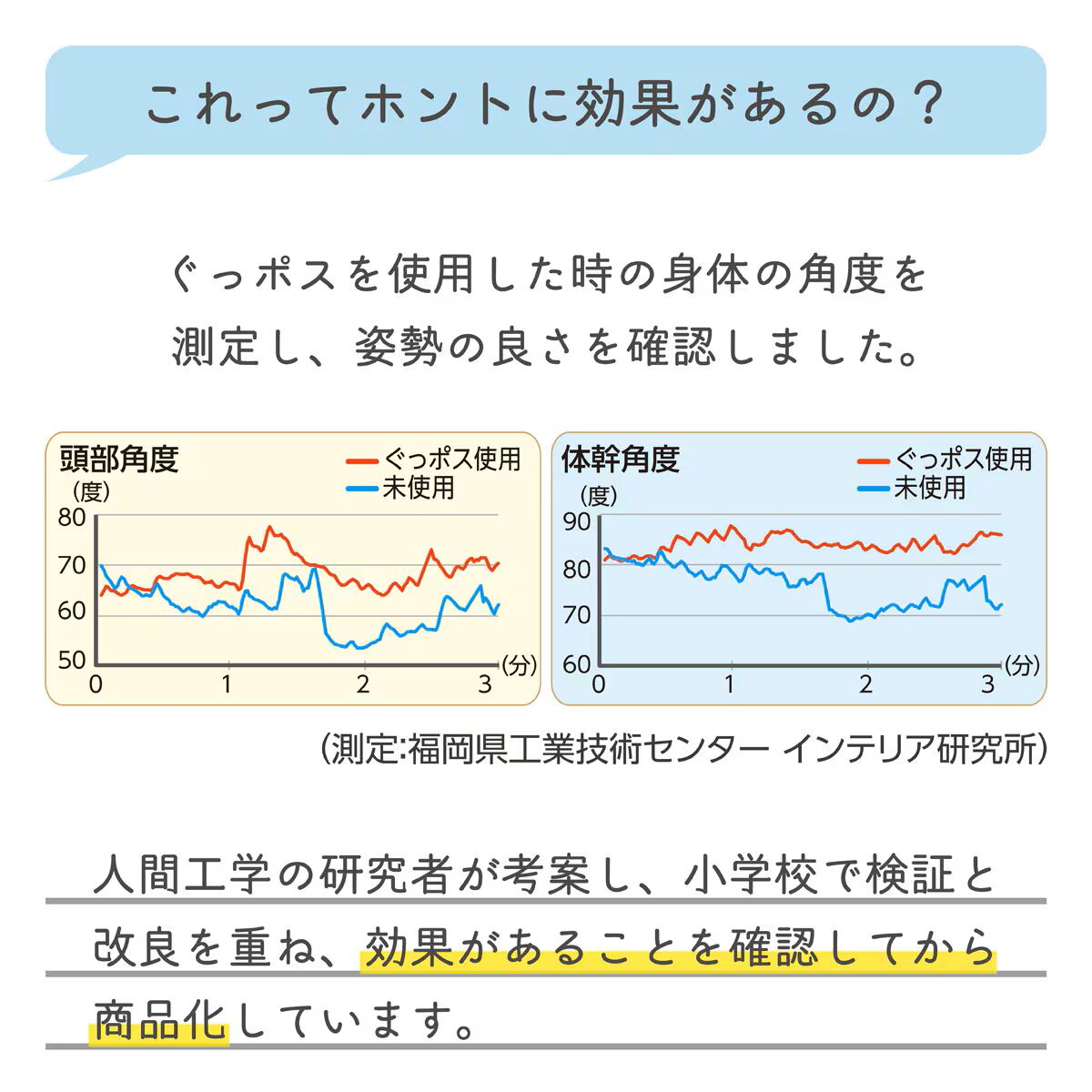 人間工学の研究者が考案し、小学校で検証と改良を重ね、効果があることを確認してから商品化しています。