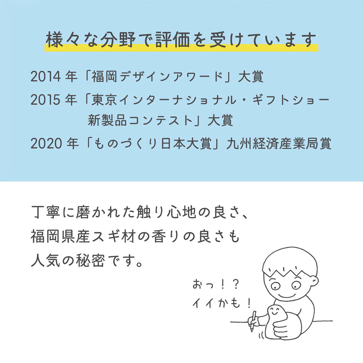 丁寧に磨かれた触り心地の良さ、福岡県産杉の香りの良さ、どこにでも持ち運べるのも人気の秘密です。