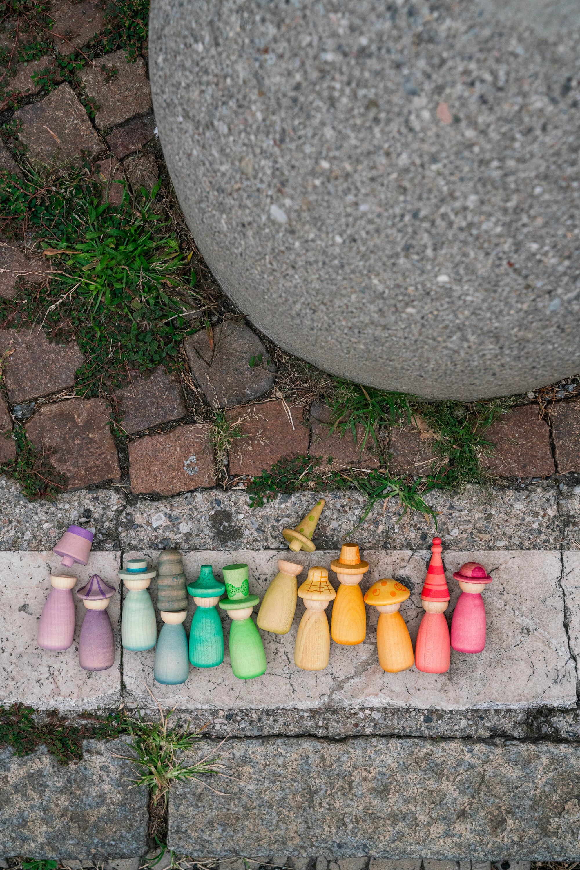 一つ一つ手作りされているので、それぞれが唯一無二です。私達の人生、さらには私達自身と同じように時を経ることで、へこみやささくれなど色や外見に小さな変化が生まれてきます。想像力を使った自由な遊びに貢献し、役目を果たした証拠です。なんて素晴らしいサインでしょう。その時はお祝いしてあげてください。