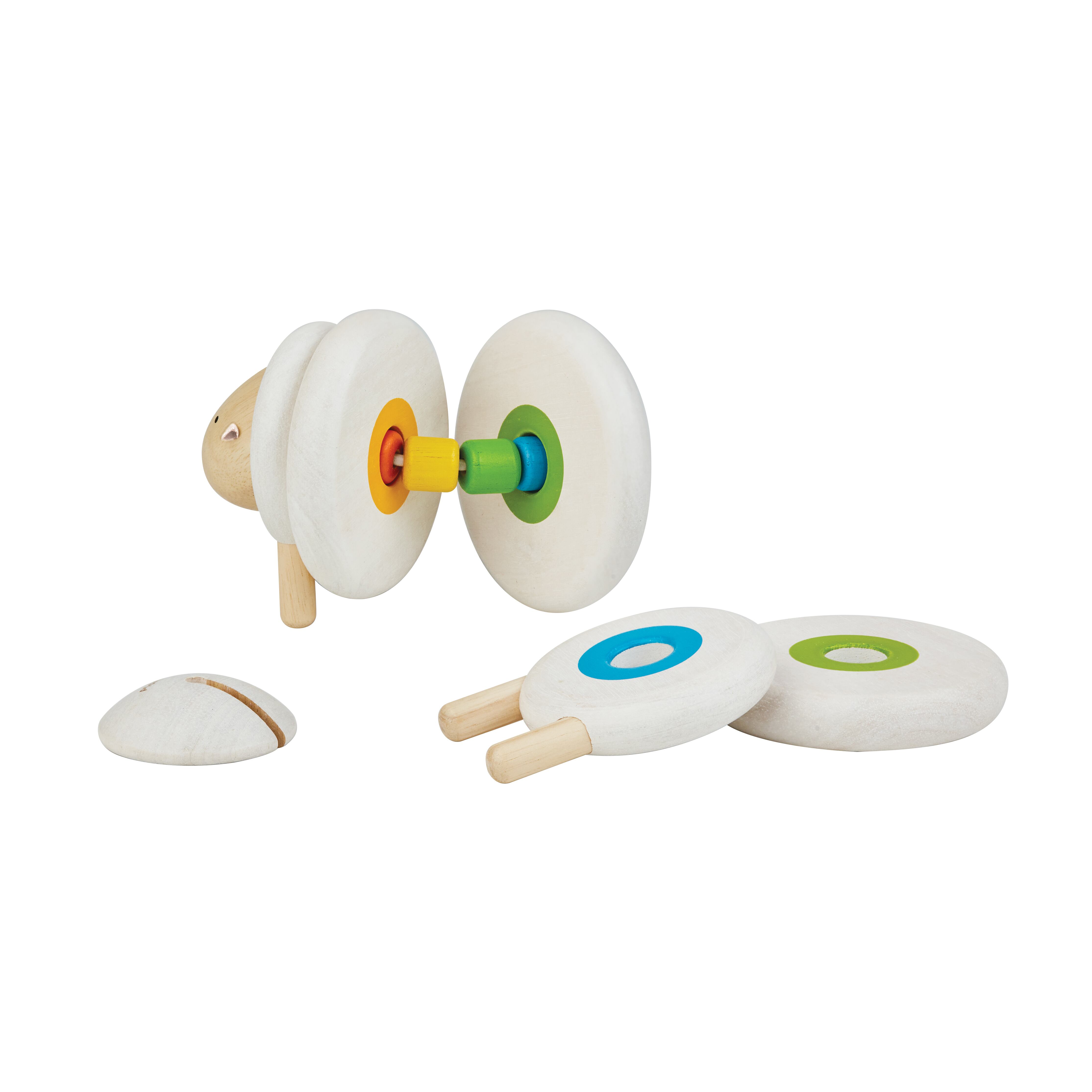 親しみやすい羊さんを、ひも通しで組み立てます。