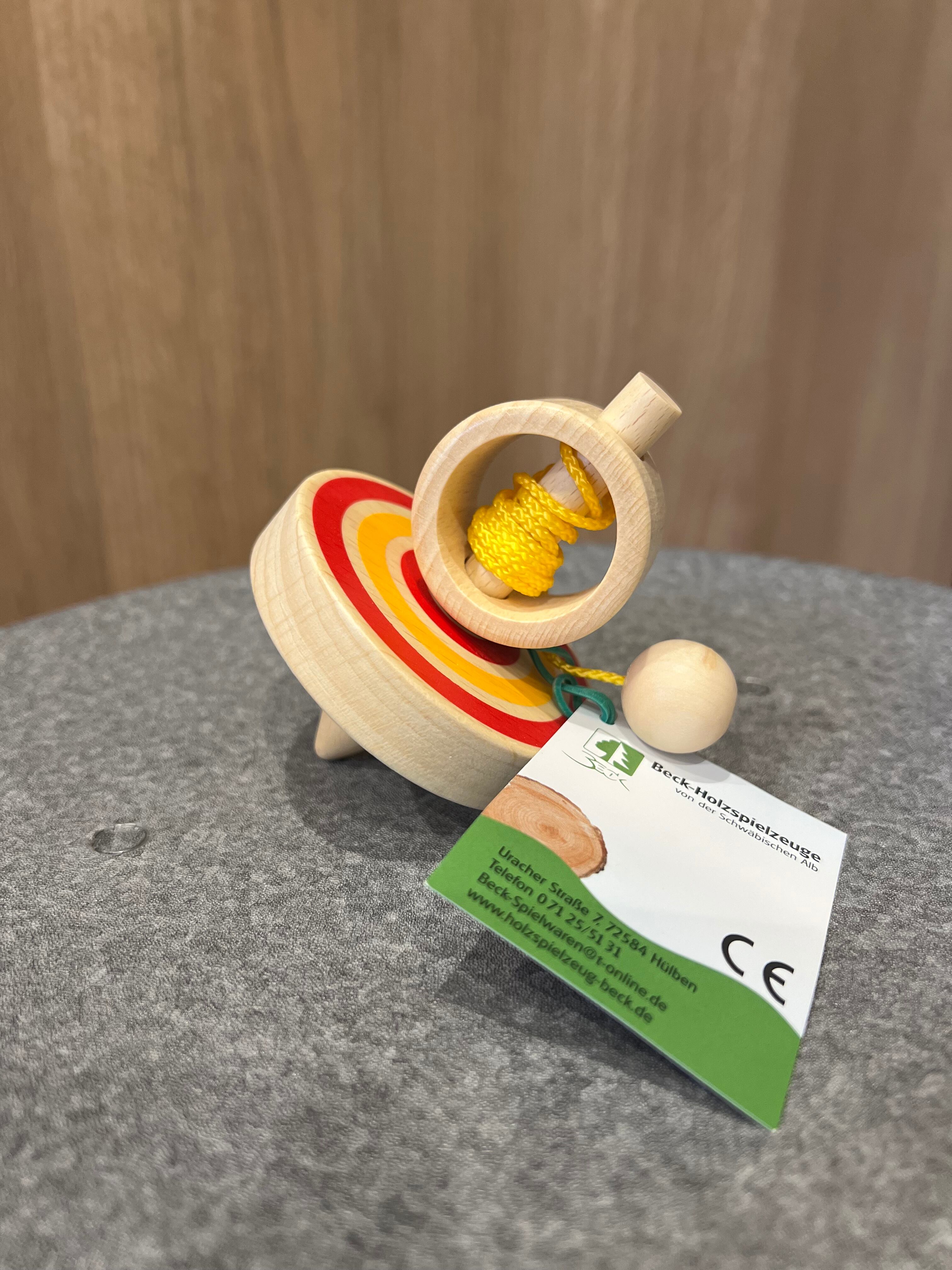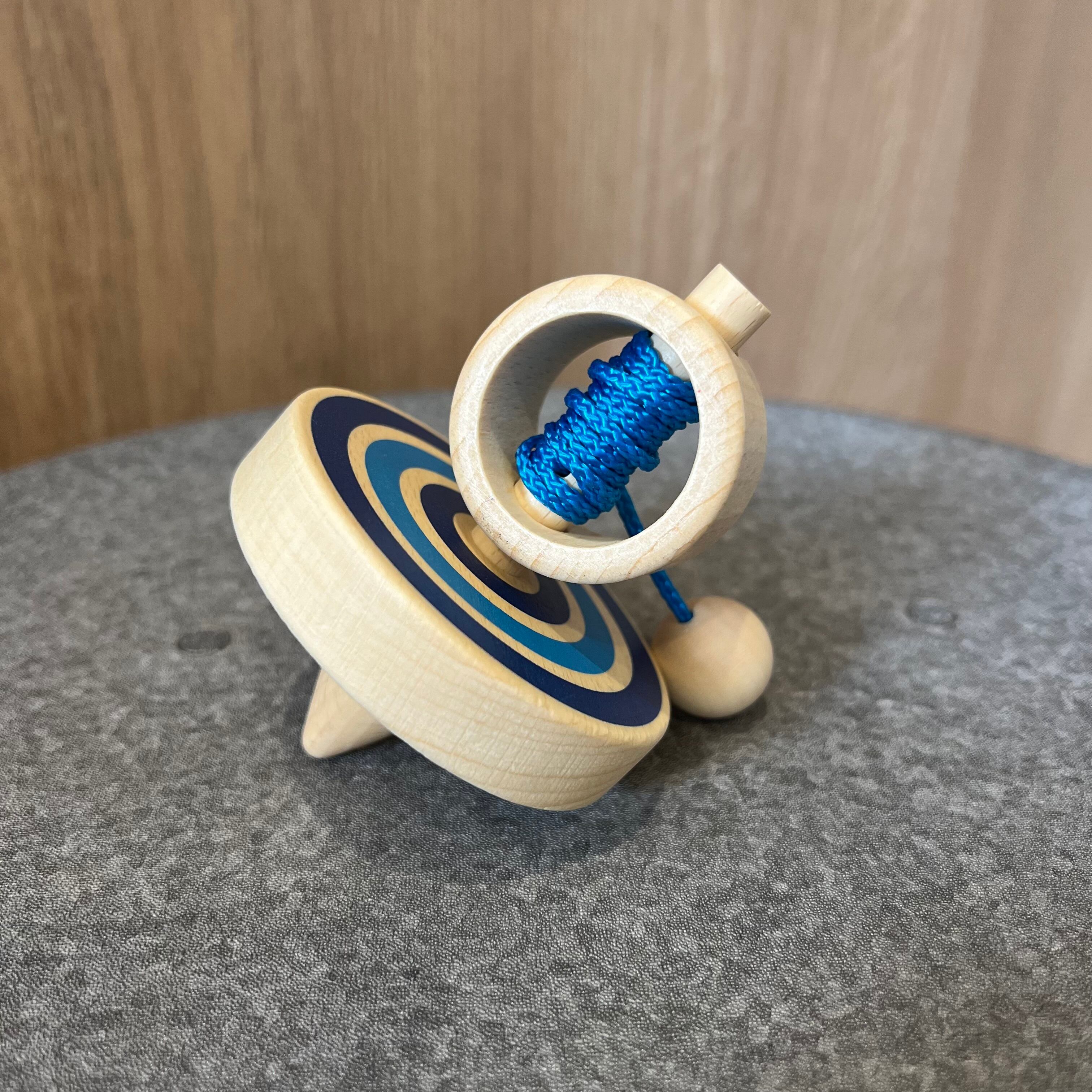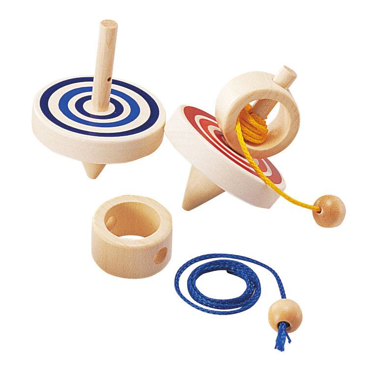 ひもを引っ張るだけで勢いよくコマが回ります。